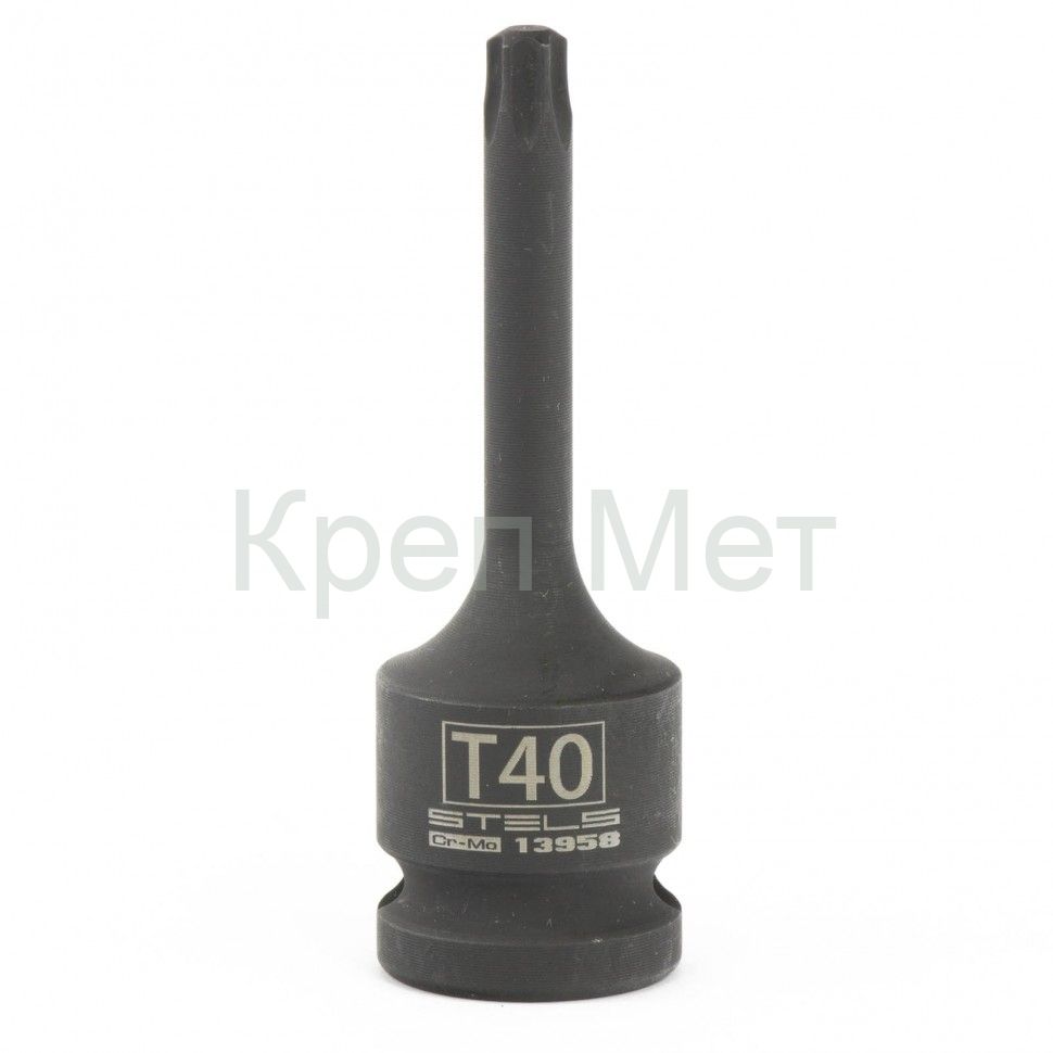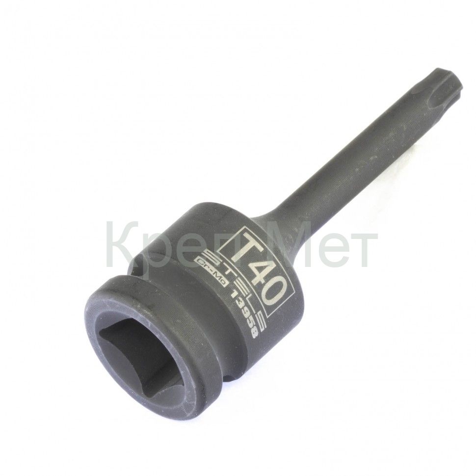 Ударная головка TORX 40 Stels 13958 с посадочным квадратом 1/2 дюйма применяется для монтажа и демонтажа крепежных элементов с помощью пневматического или электрического гайковерта. Отличается высокой прочностью и способностью выдерживать динамические нагрузки, поэтому подходит для профессионального использования на станциях техобслуживания.