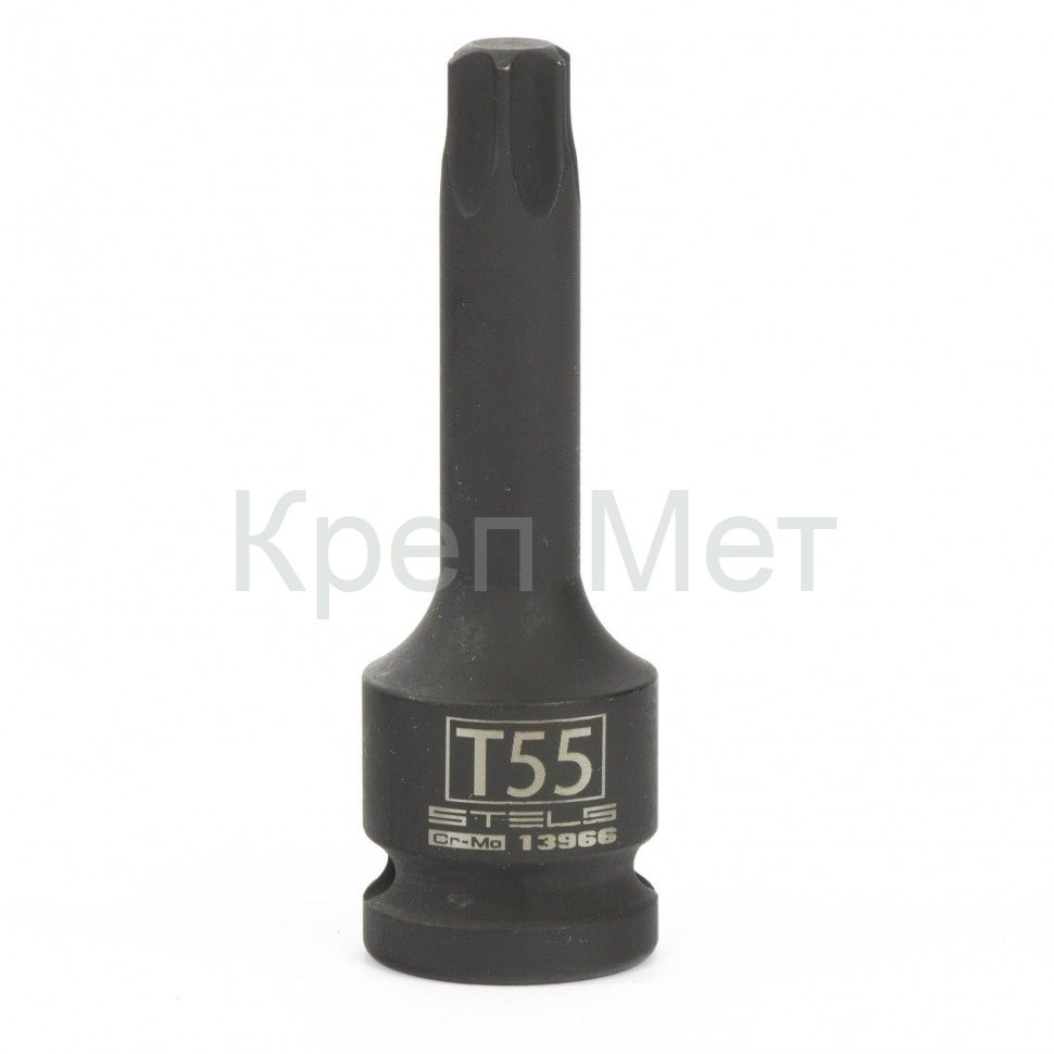 Ударная головка TORX 55 Stels 13966 с посадочным квадратом 1/2 дюйма применяется для монтажа и демонтажа крепежных элементов с помощью пневматического или электрического гайковерта. Отличается высокой прочностью и способностью выдерживать динамические нагрузки, поэтому подходит для профессионального использования на станциях техобслуживания.