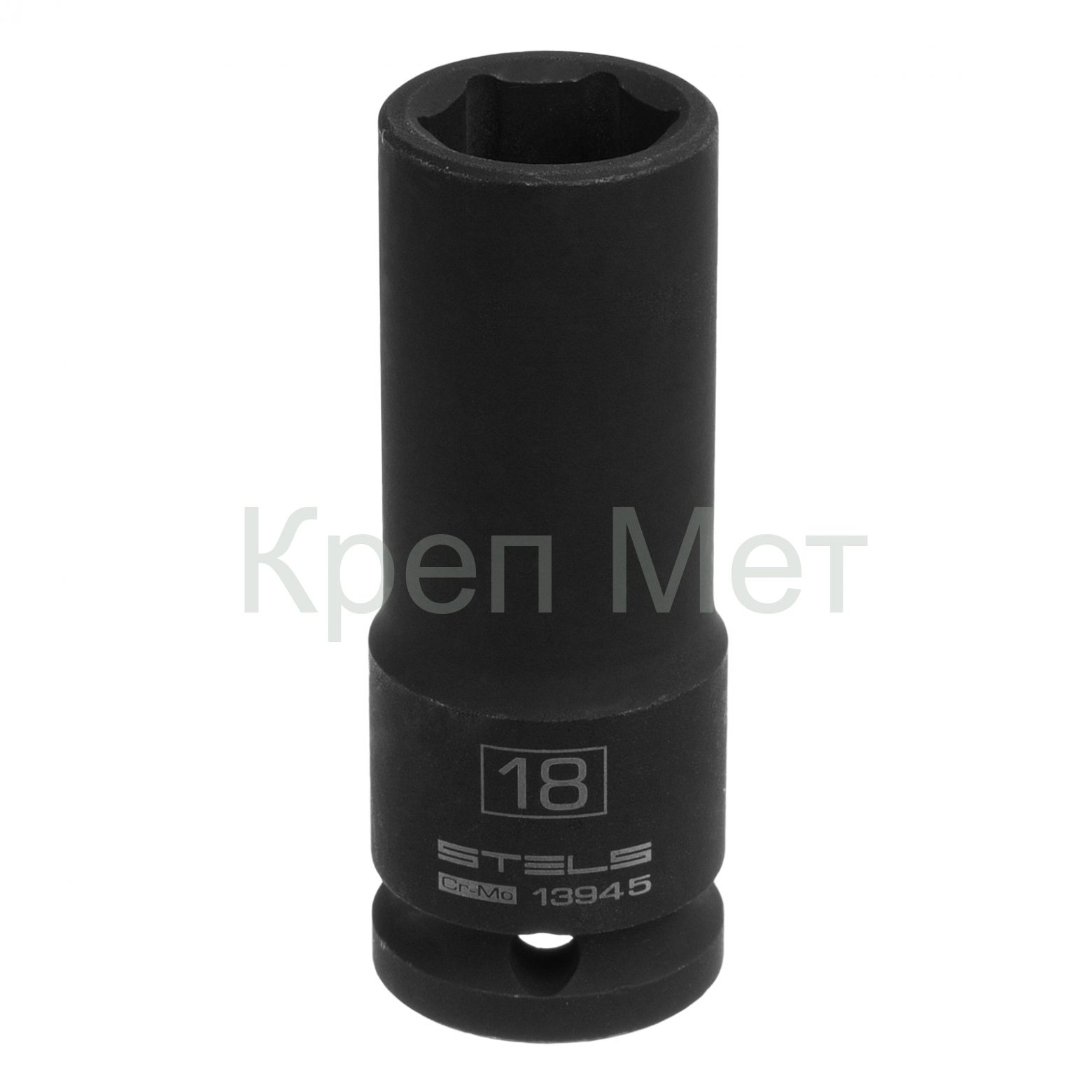 Головка ударная удлиненная шестигранная, 18 мм, 1/2, CrMo Stels