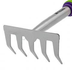 Стальные 5-зубые грабли Palisad CONNECT 63003 размером 115 х 275 мм, с пластиковой рукояткой, используются для удаления мелкого мусора и срезанных стеблей, а также для рыхления почвы на небольших участках — клумбах, грядках. Инструмент пригодится во время работы в цветнике или огороде. Грабли совместимы с удлиняющими штангами на 500 мм и на 800 мм — Palisad 63016 и 63017.