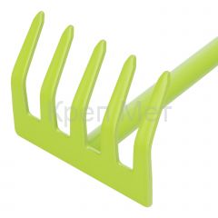- Удобное хранение — отверстие в рукоятке позволяет подвешивать грабли на крючок или гвоздь.