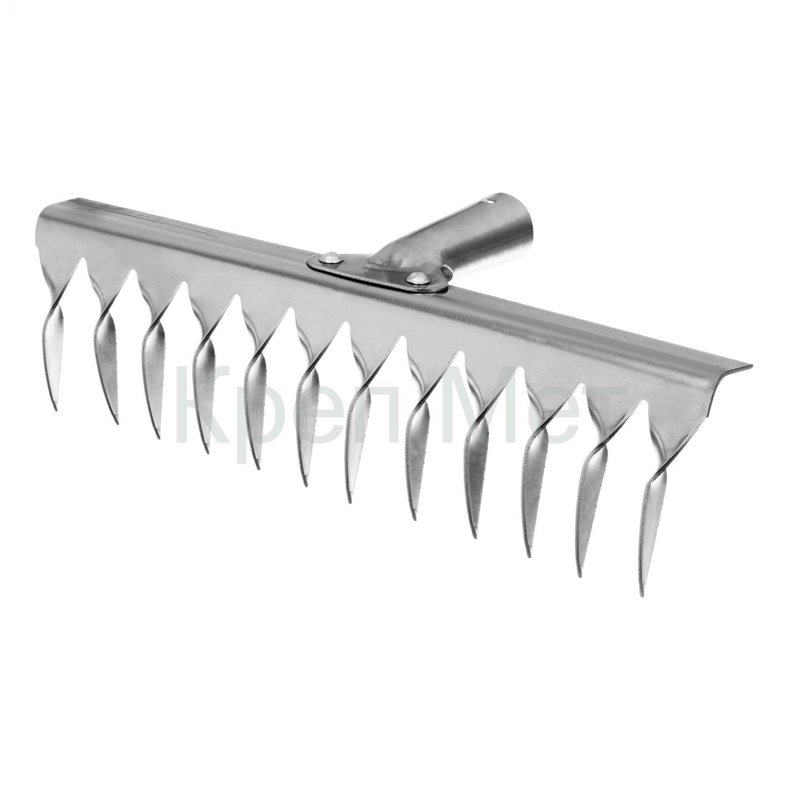 - Грабли, нержавеющая сталь, 290 мм, 12 витых зубьев, без черенка, Сибртех
