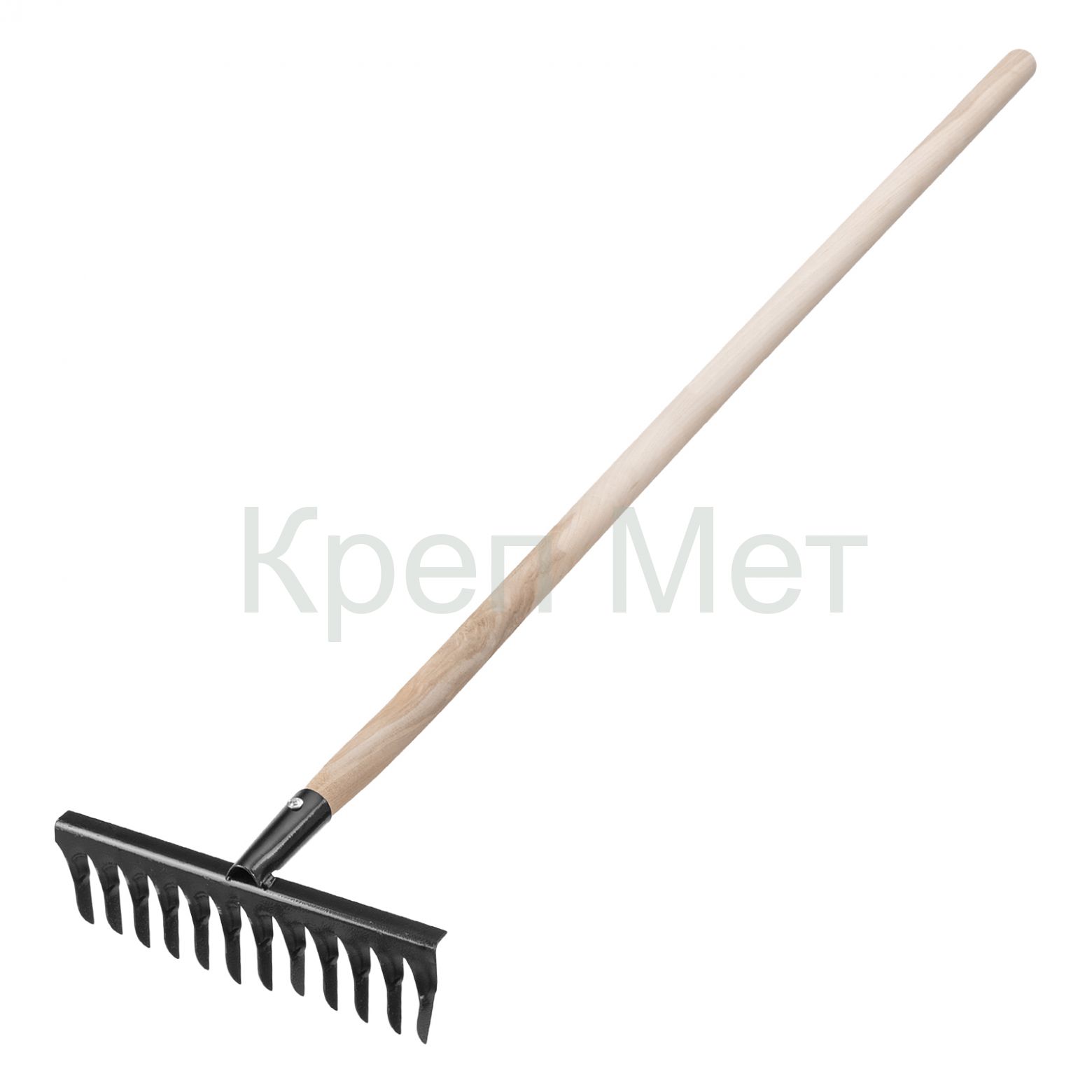 - Грабли стальные, 300х1300 мм, 12 витых зубьев, деревянный черенок, Сибртех