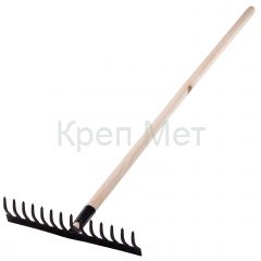 Грабли стальные, 360х1300 мм, 14 прямых зубьев, деревянный черенок, Сибртех