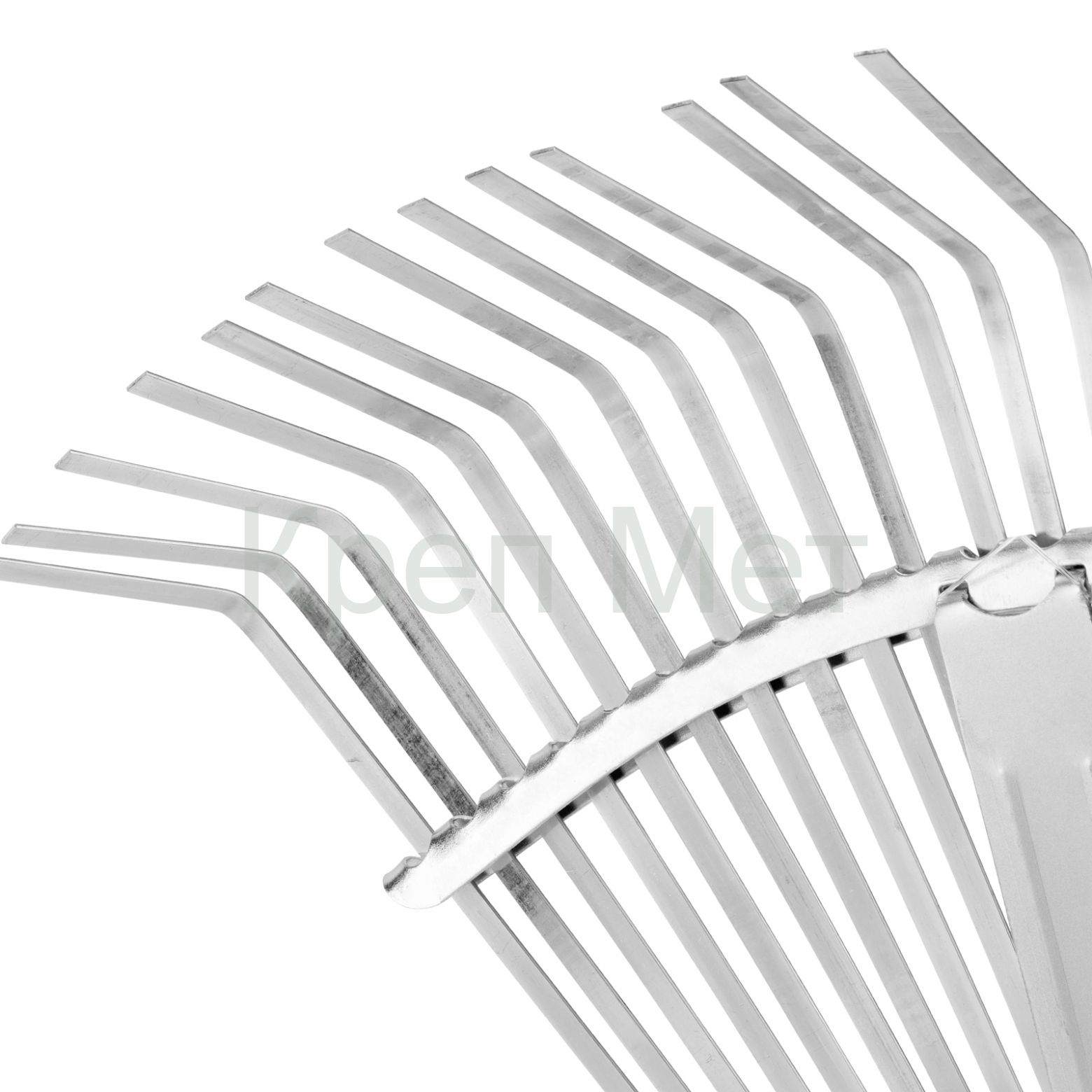 - Прочность и коррозионная стойкость — грабли изготовлены из оцинкованной среднеуглеродистой стали.