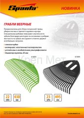 - Грабли веерные пластиковые, 430 мм, 22 плоских зуба, без черенка, Sparta