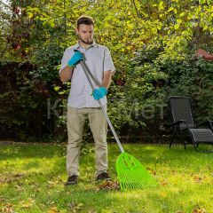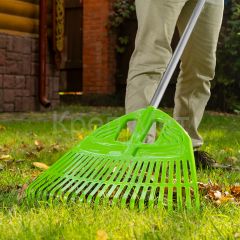 - Прочность и долговечность — грабли изготовлены из эластичного и стойкого к ультрафиолету полипропилена, основание усилено ребрами жесткости.