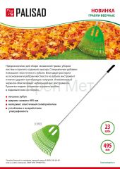 Пластиковые веерные грабли Palisad 61805 размером 495 x 1680 мм, с 23 плоскими зубьями, рабочей частью шириной 495 мм и алюминиевым черенком, — садовый инвентарь, предназначенный для очищения газонов и грядок от мелкого мусора и листьев. Плоские зубья эффективно собирают мусор, не повреждая растительность. Грабли поставляются в сборе с черенком и полностью готовы к использованию.