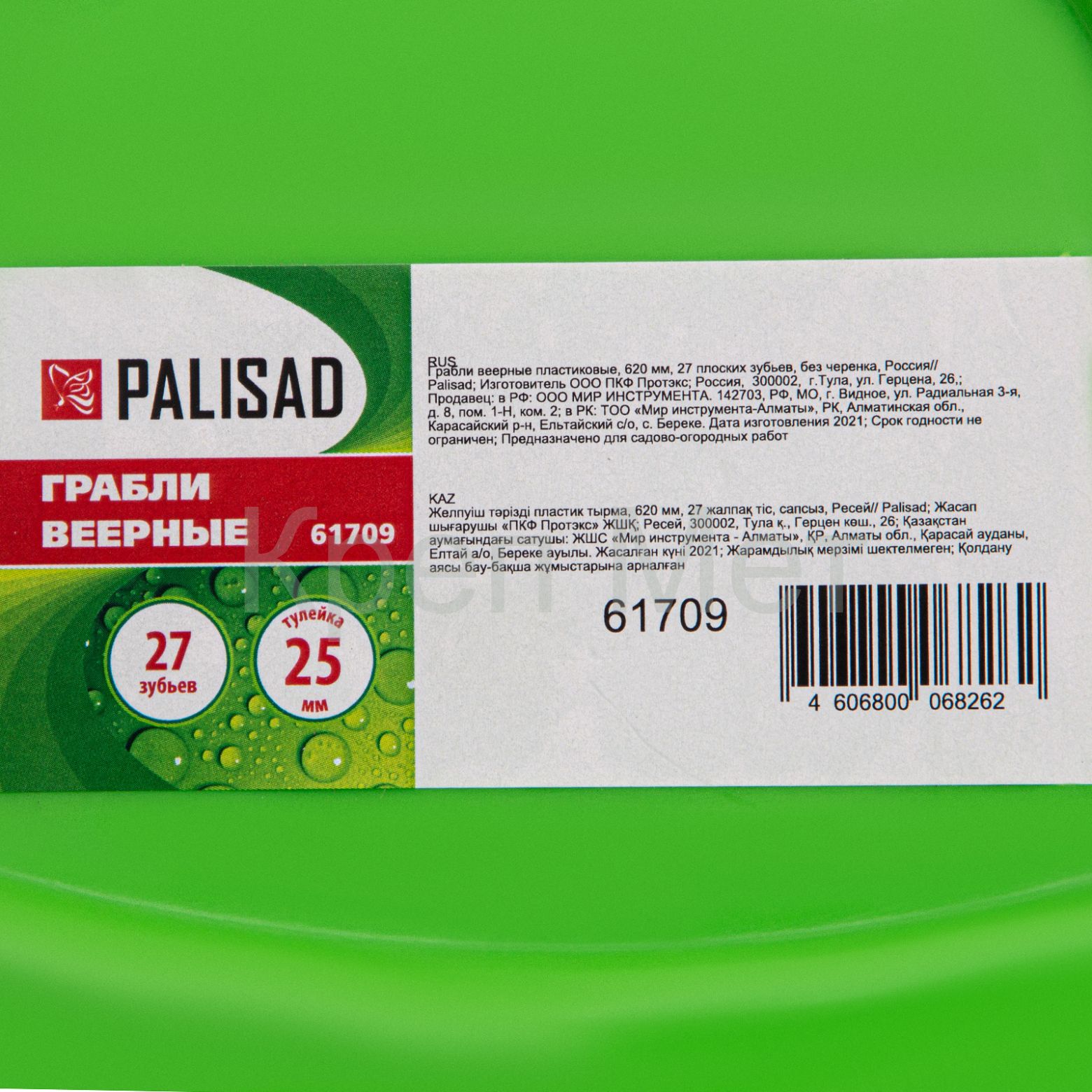 - Грабли веерные пластиковые, 620 мм, 27 плоских зубьев, без черенка, Palisad