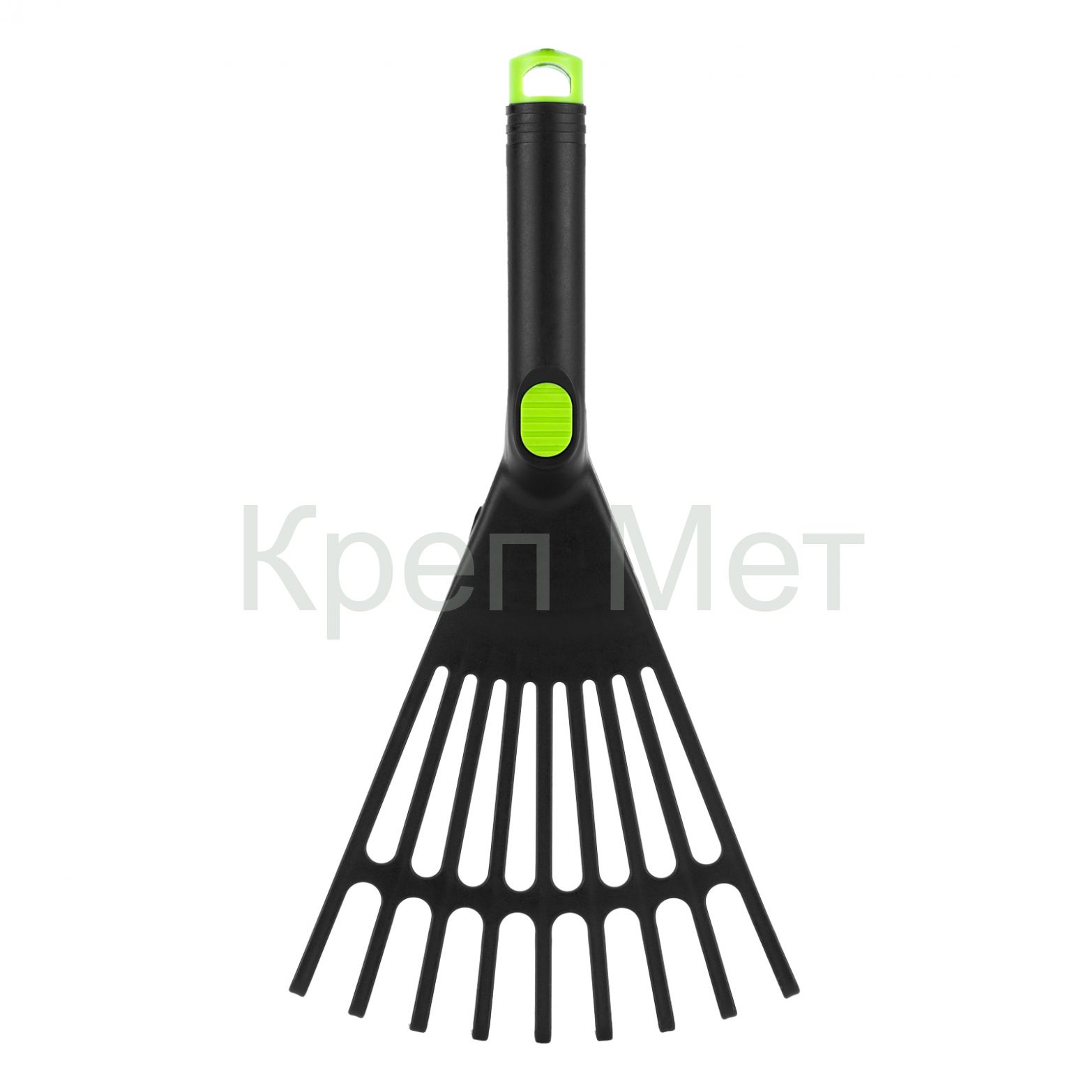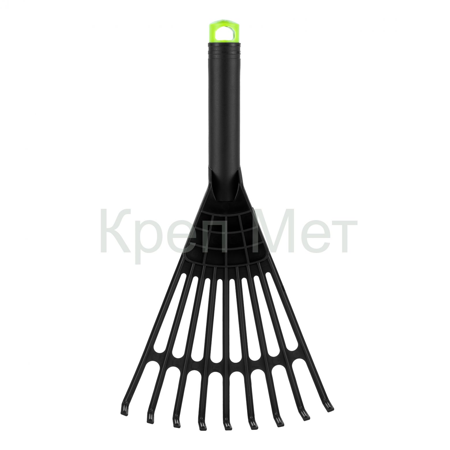 Веерные 9-зубые грабли Palisad размером 175 х 350 мм, пластиковые, используются для выполнения мелких садово-огородных работ. Благодаря 9 упругим зубьям с плоским профилем они оптимальны для сбора мелкого мусора и срезанных отростков в цветниках и на грядках.