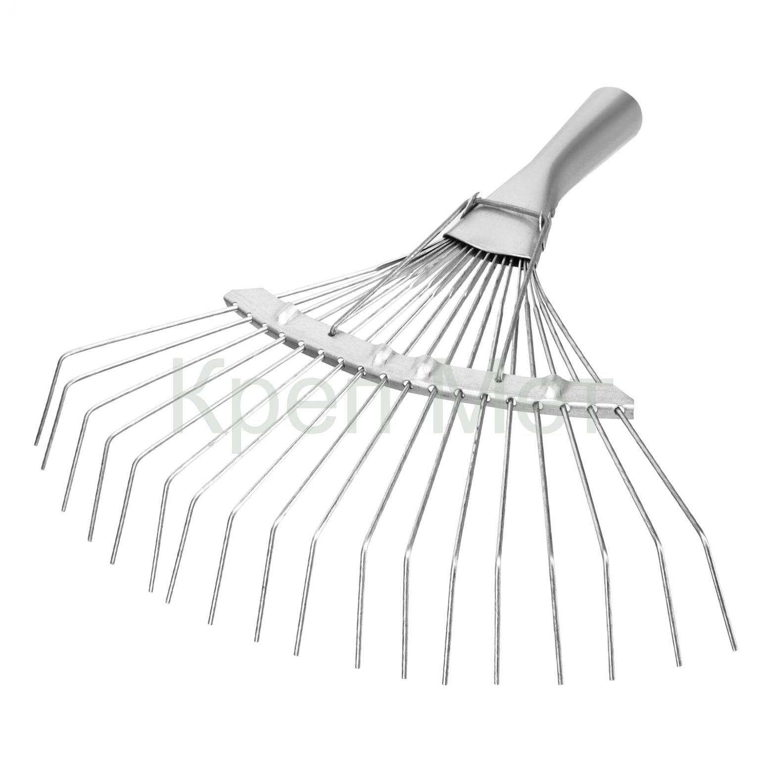 Грабли веерные стальные, 350 мм, 18 круглых зубьев, оцинкованные, без черенка, Сибртех