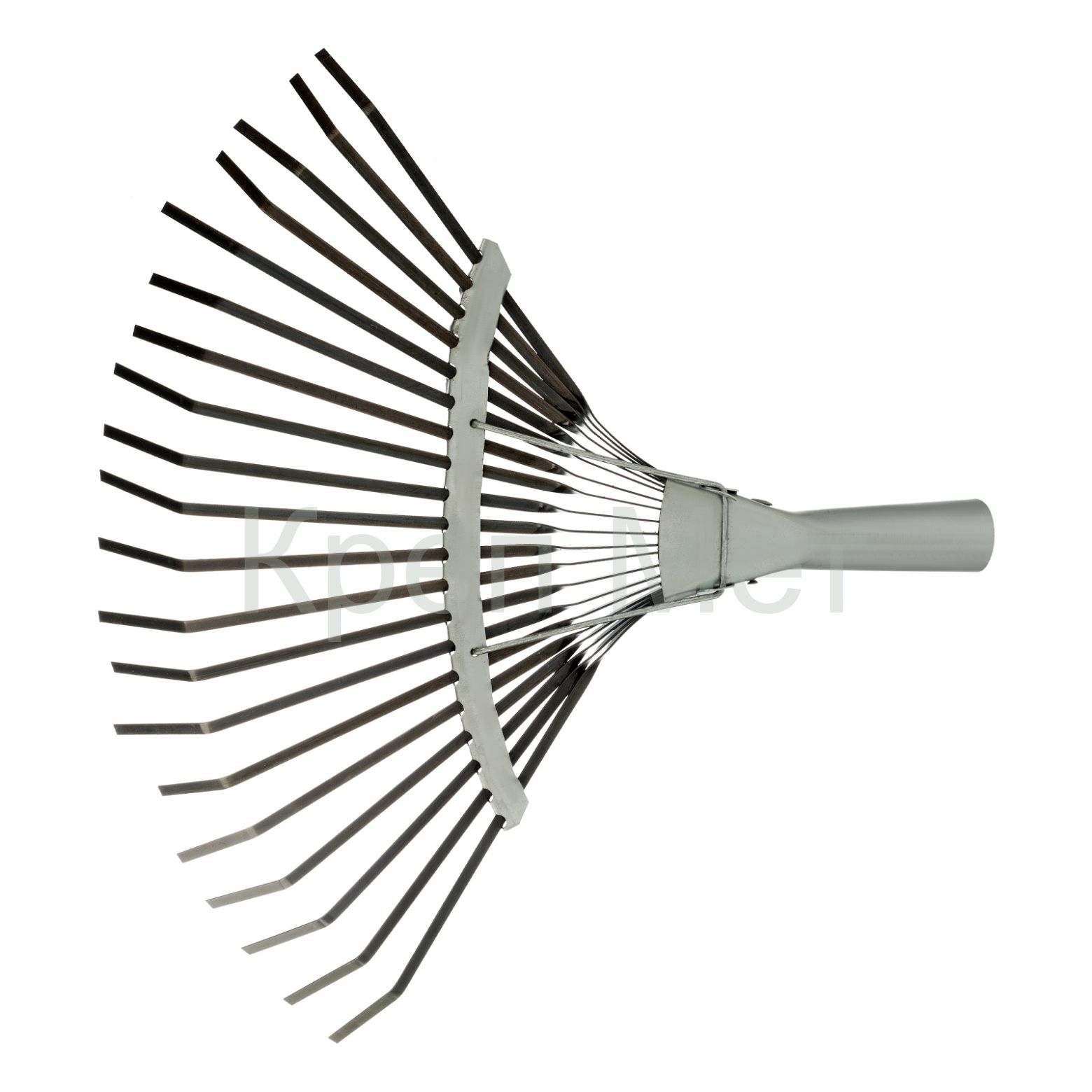 - Грабли веерные стальные, 385 мм, 20 плоских зубьев, оксидированные, без черенка, Сибртех