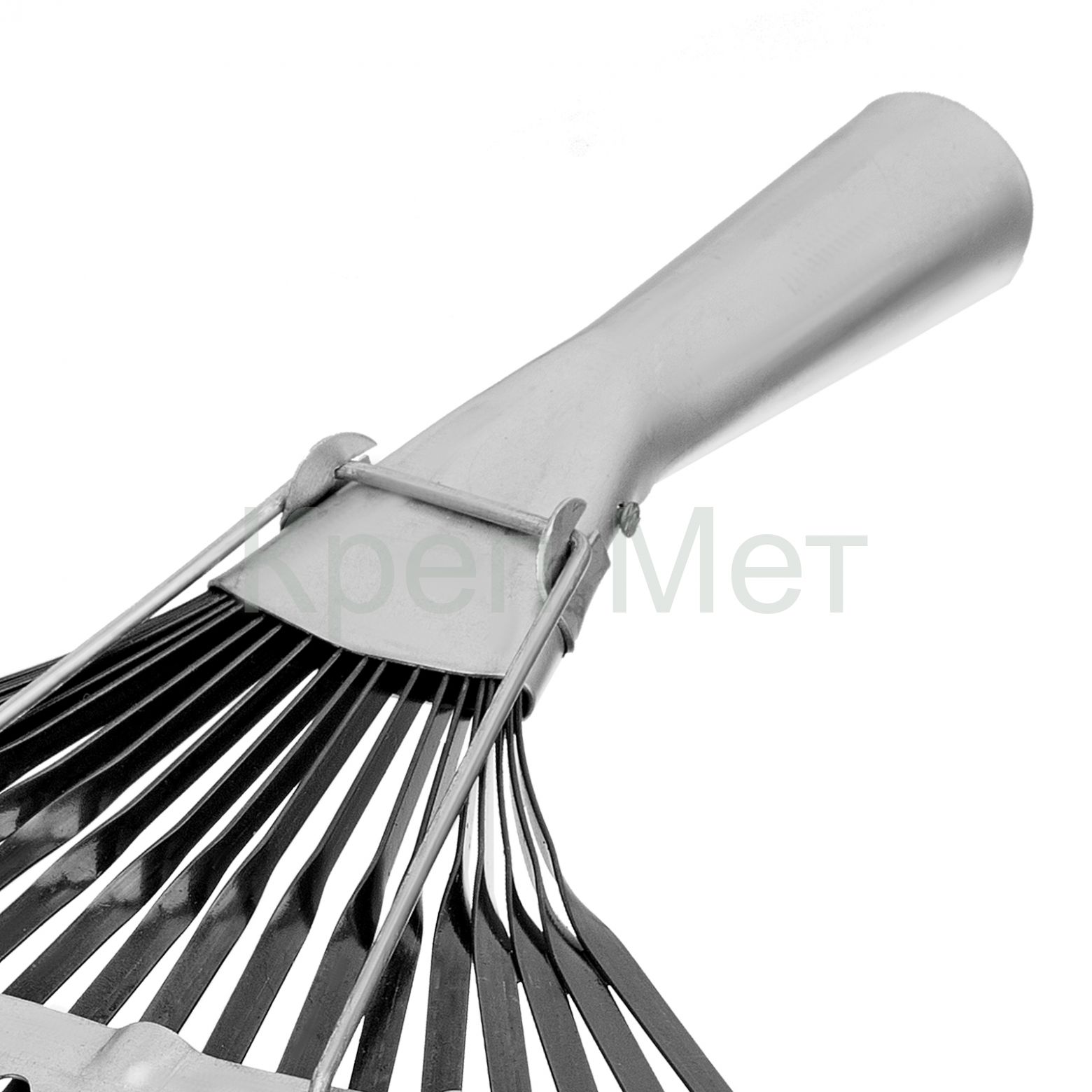 Грабли веерные стальные, 385 мм, 20 плоских зубьев, оксидированные, без черенка, Сибртех