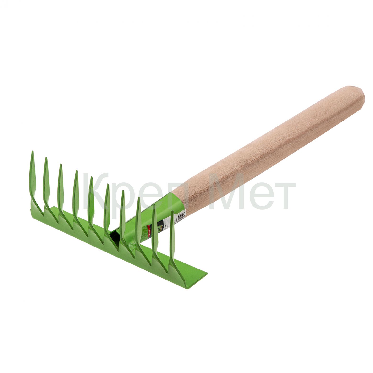 Грабли витые 10 - зубые, 200 х 390 мм, стальные, деревянная рукоятка, Агроном, Сибртех