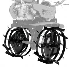Грунтозацепы Denzel 59916 диаметром 425 мм и шириной 200 мм, с посадочным кругом 30 мм, 2 шт. в комплекте, устанавливаются на мотоблок и облегчают выполнение тяжелых работ: окучивание, вспахивание, рыхление. Обеспечивают хорошее сцепление с почвой, устойчивость на рыхлом грунте, а также улучшают проходимость. Изделия используются для ухода за дачным участком и проведения сельскохозяйственных работ.