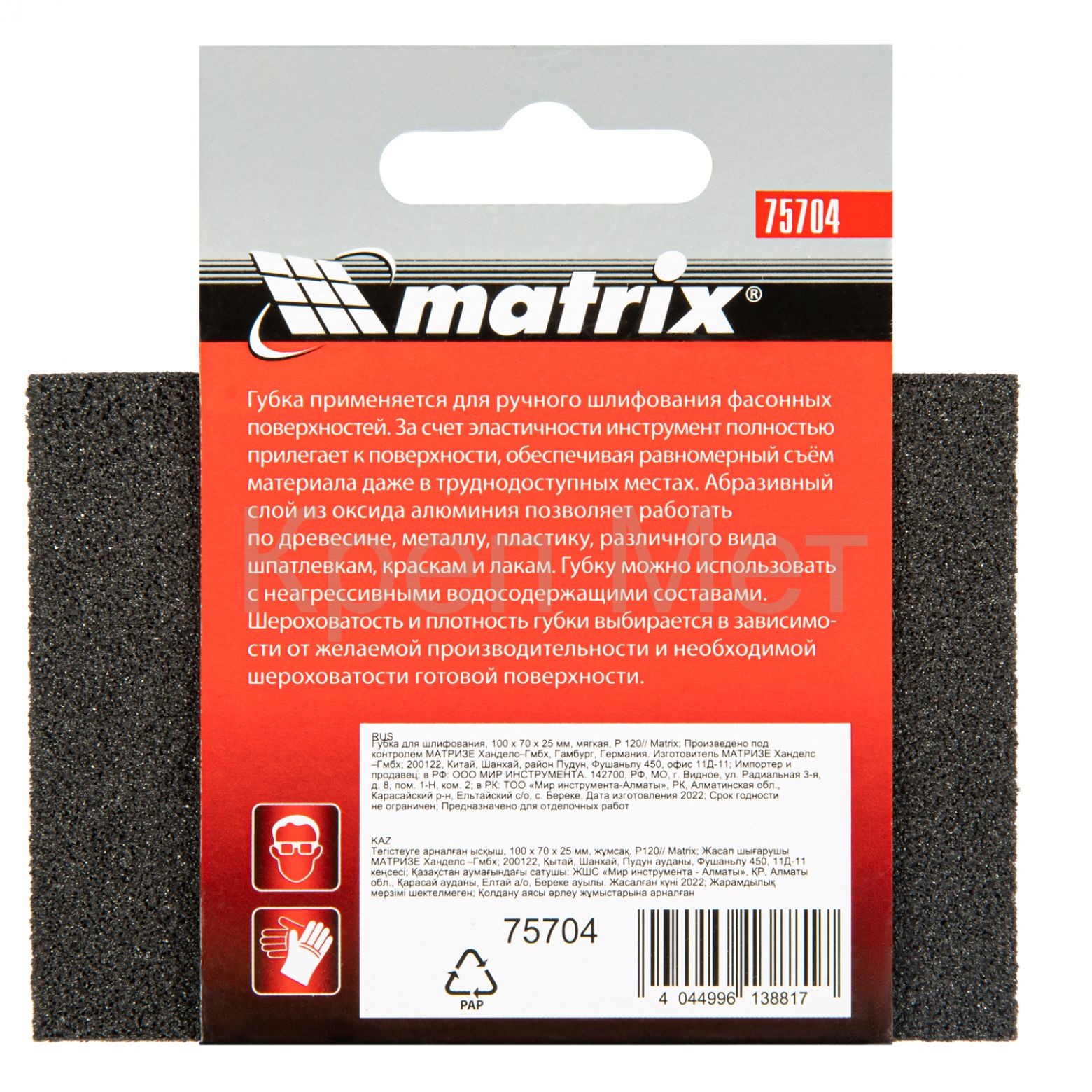 - Губка для шлифования, 100 х 70 х 25 мм, мягкая, P120 Matrix