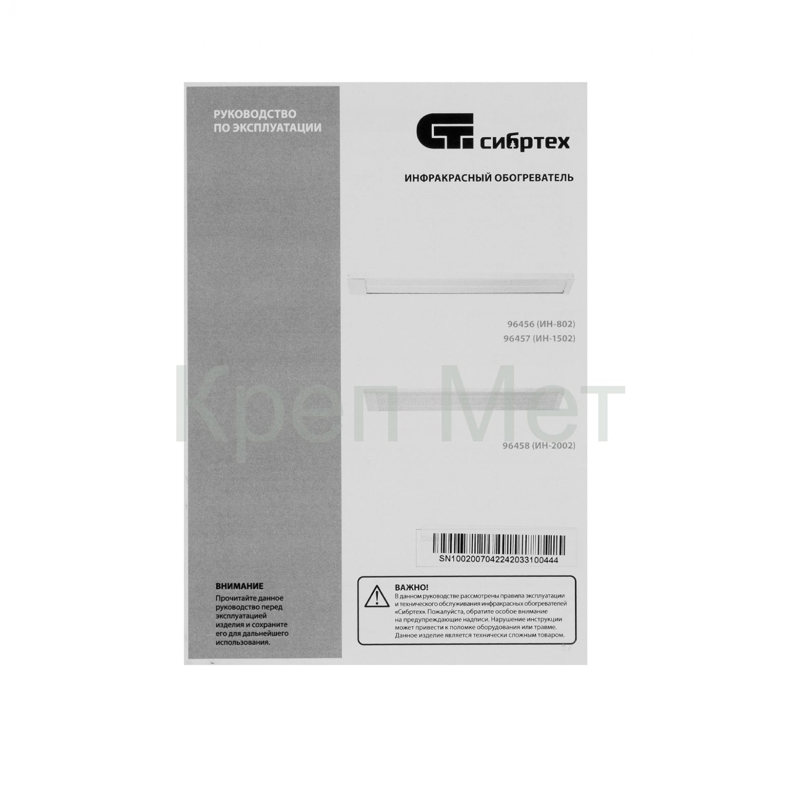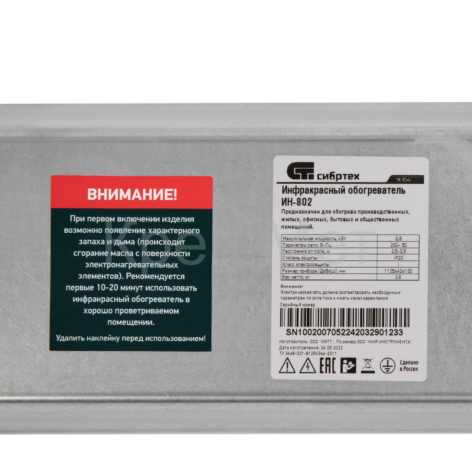 - Инфракрасный обогреватель ИН- 802, 230В, 800 Вт Сибртех