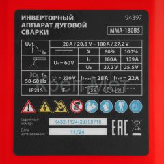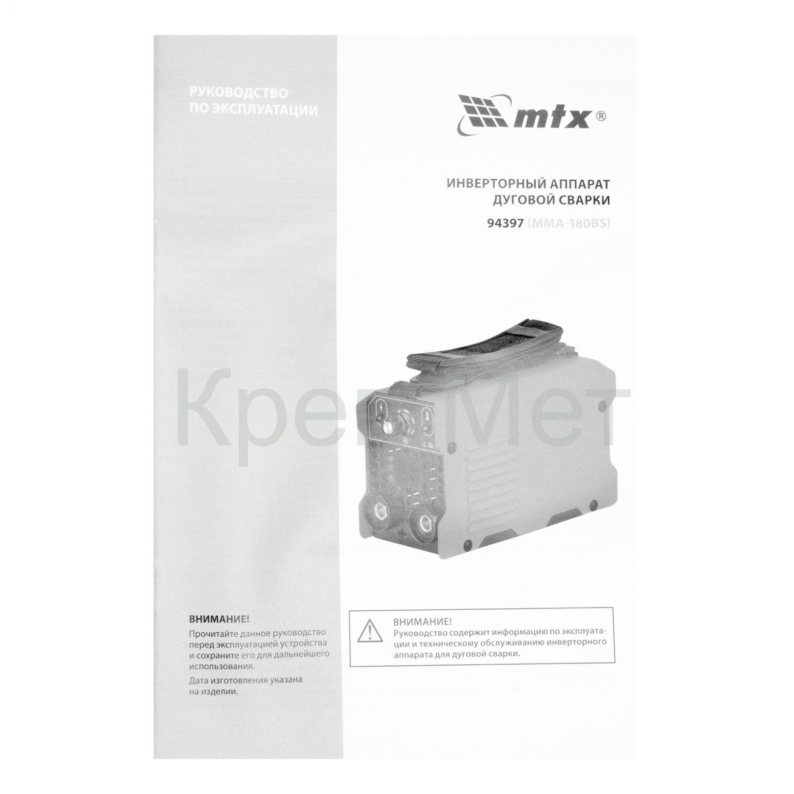 - Инверторный аппарат дуговой сварки MMA-180BS, 180 А, ПВ 60% MTX