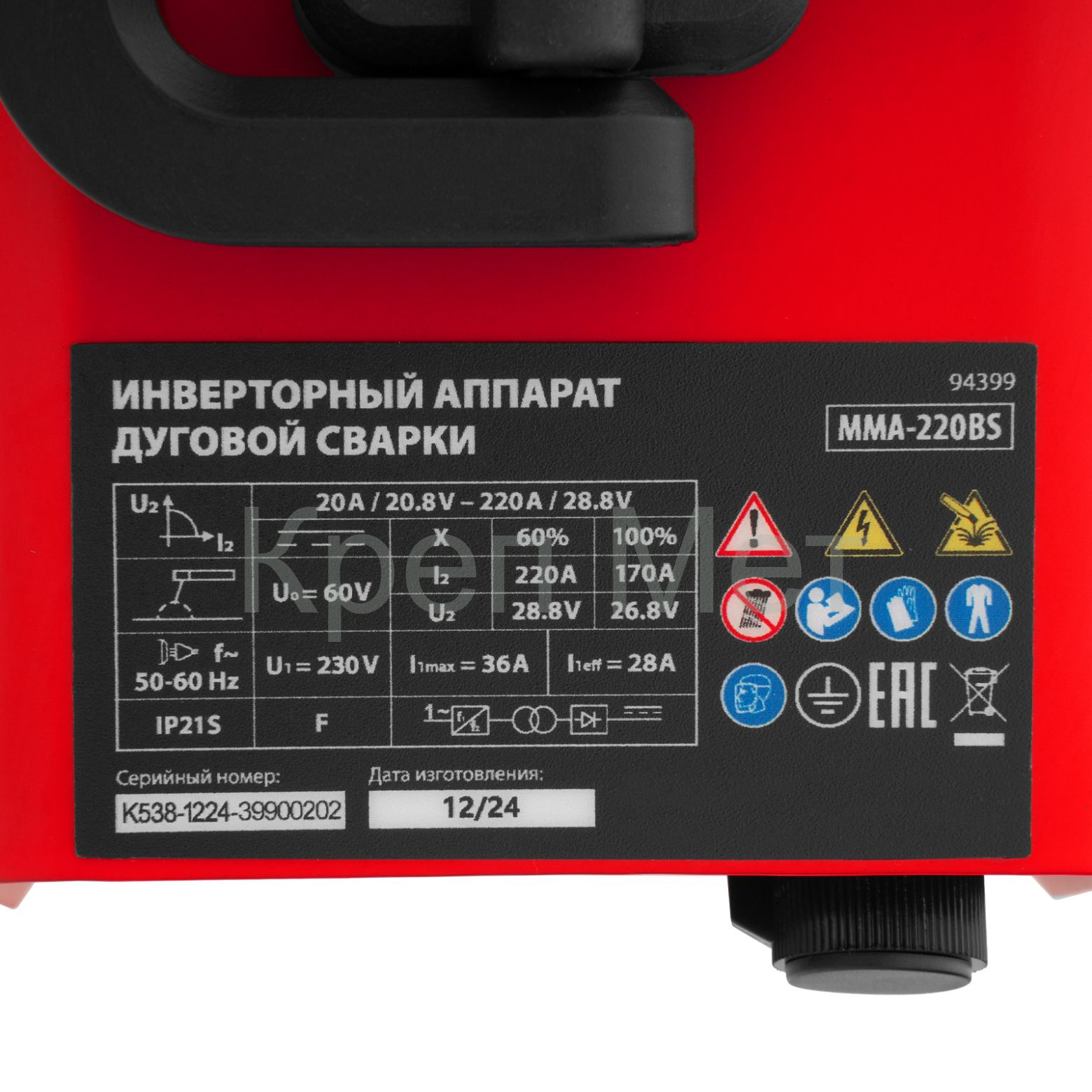 - Инверторный аппарат дуговой сварки MMA-220BS, 220 А, ПВ 60% MTX
