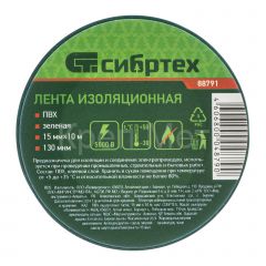- Изолента ПВХ, 15 мм х 10 м, зеленая Сибртех