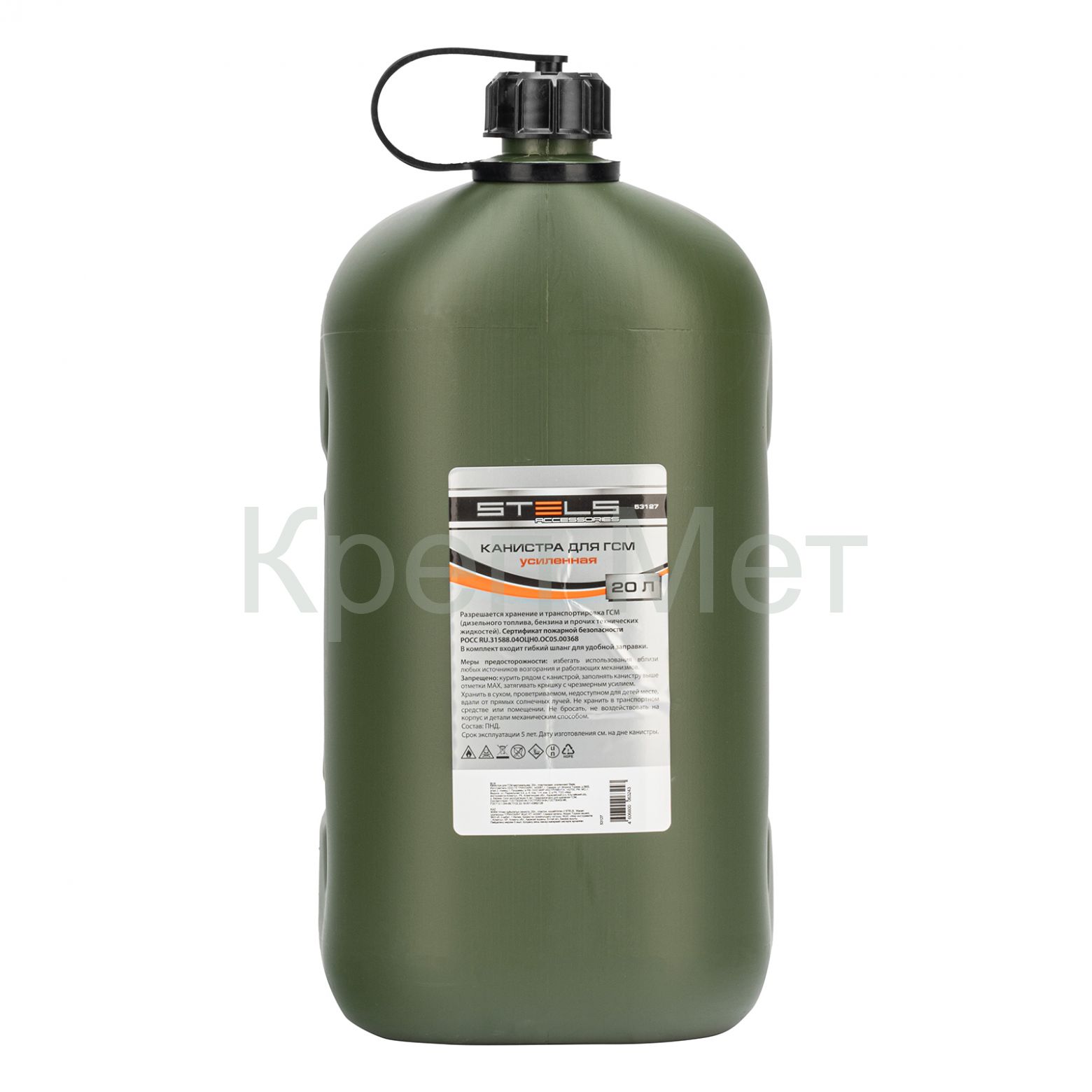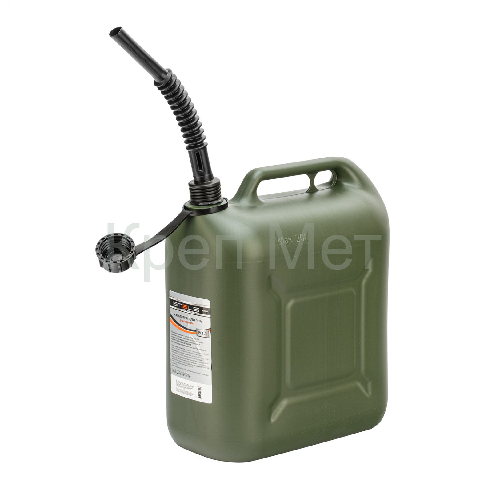 - Канистра для ГСМ вертикальная 20 л, пластиковая, усиленная Stels