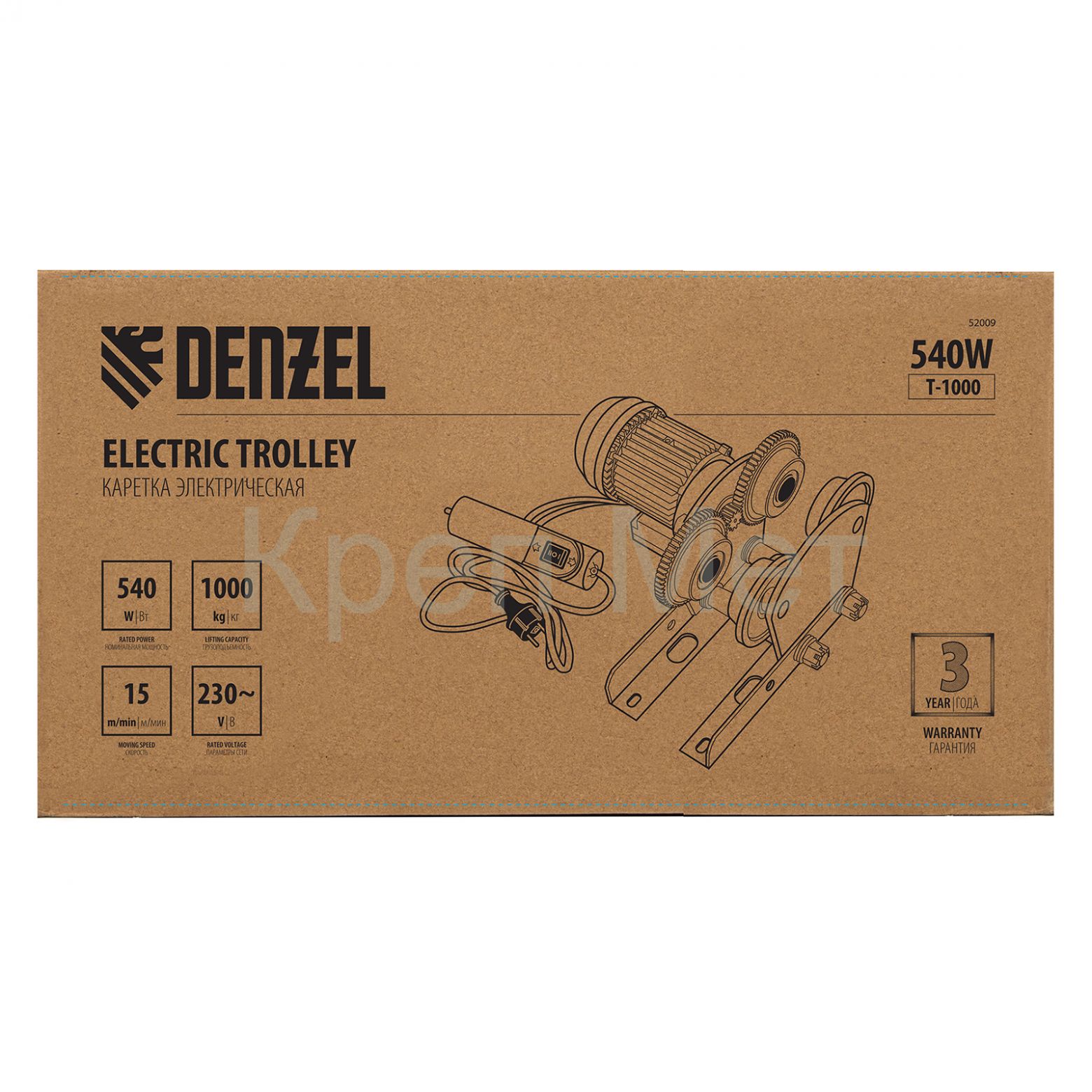- Каретка электрическая для тельфера Т-1000,1 т, 540 Вт Denzel