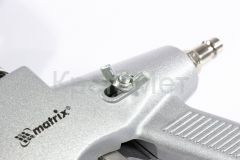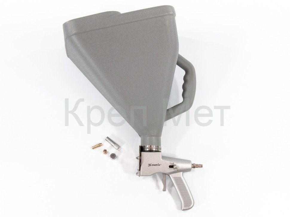 Картушный пистолет для штукатурки Matrix 57350 используется на финишном этапе отделочных работ. Комплектуется насадкой с соплами разного диаметра: 7/32, 1/4, 9/32, 5/16, 11/32, 3/8 и 13/32 дюйма, поэтому подходит для нанесения различных составов: гранитной и мраморной крошки, грунтовки, красок повышенной вязкости, шпатлевки и жидких обоев.