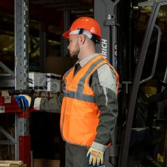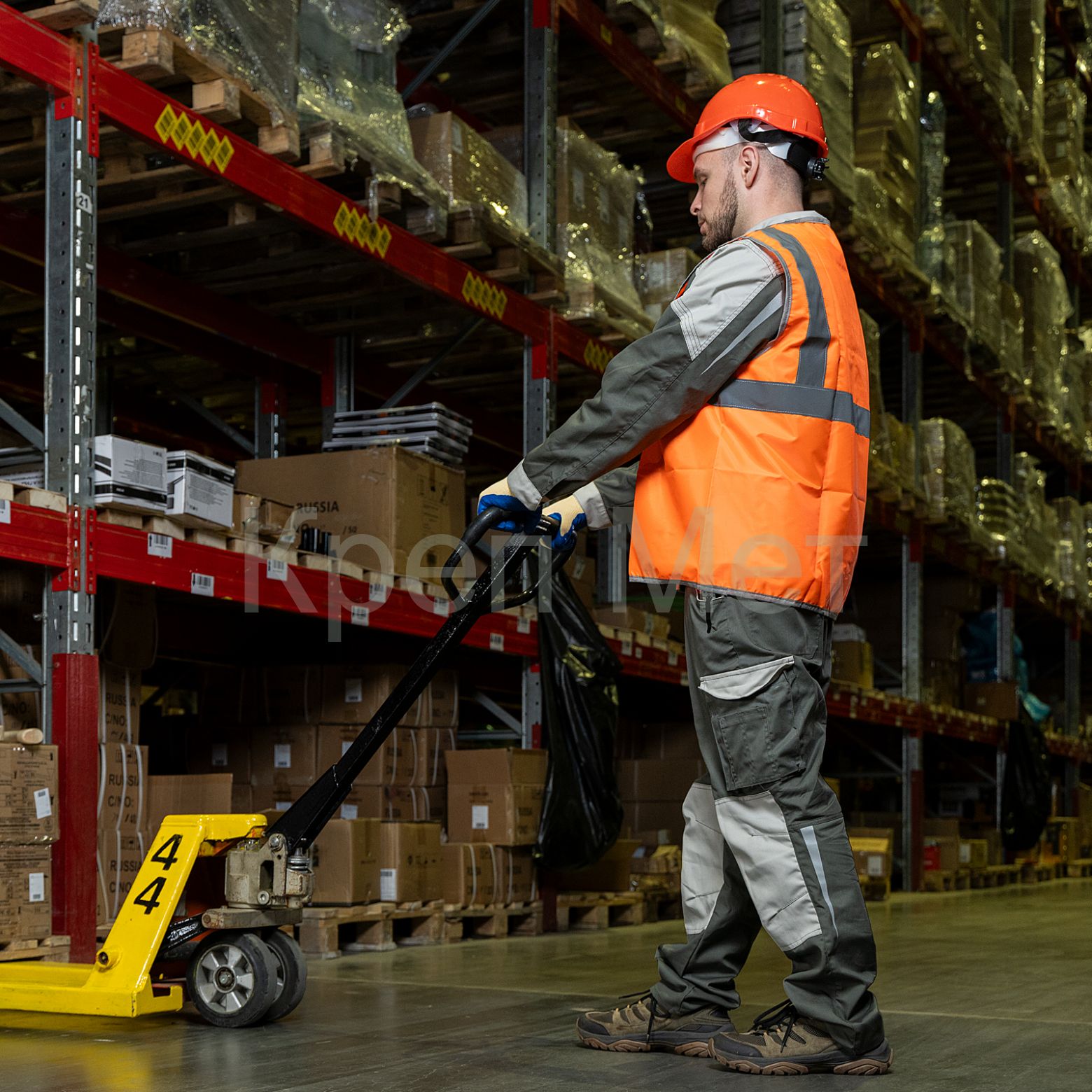 - Благодаря ярко-оранжевому цвету работник будет заметен на строительной площадке даже в условиях плохой видимости.