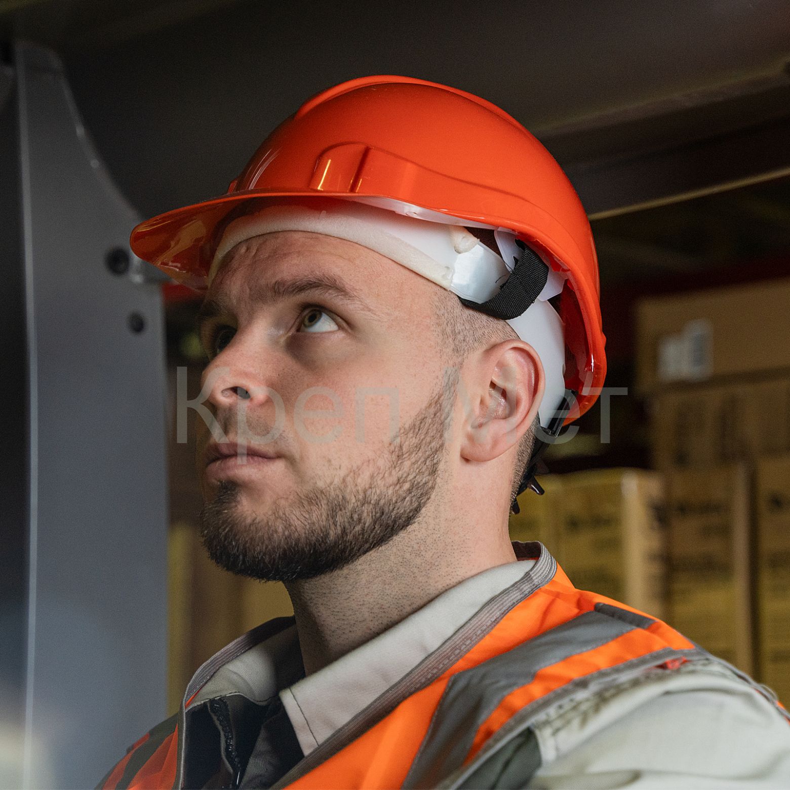 - За счет 6 точек крепления оголовья и ремня каска надежно фиксируется и не слетает с головы.