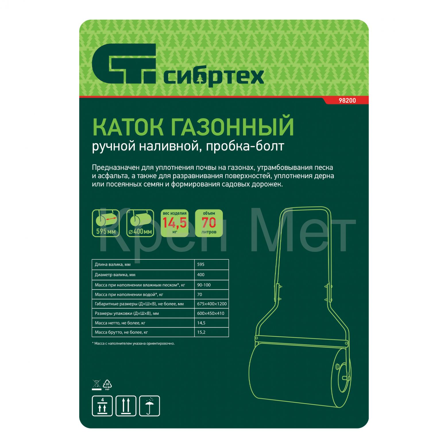 - Каток газонный 70л, ручной, наливной, пробка-болт Сибртех