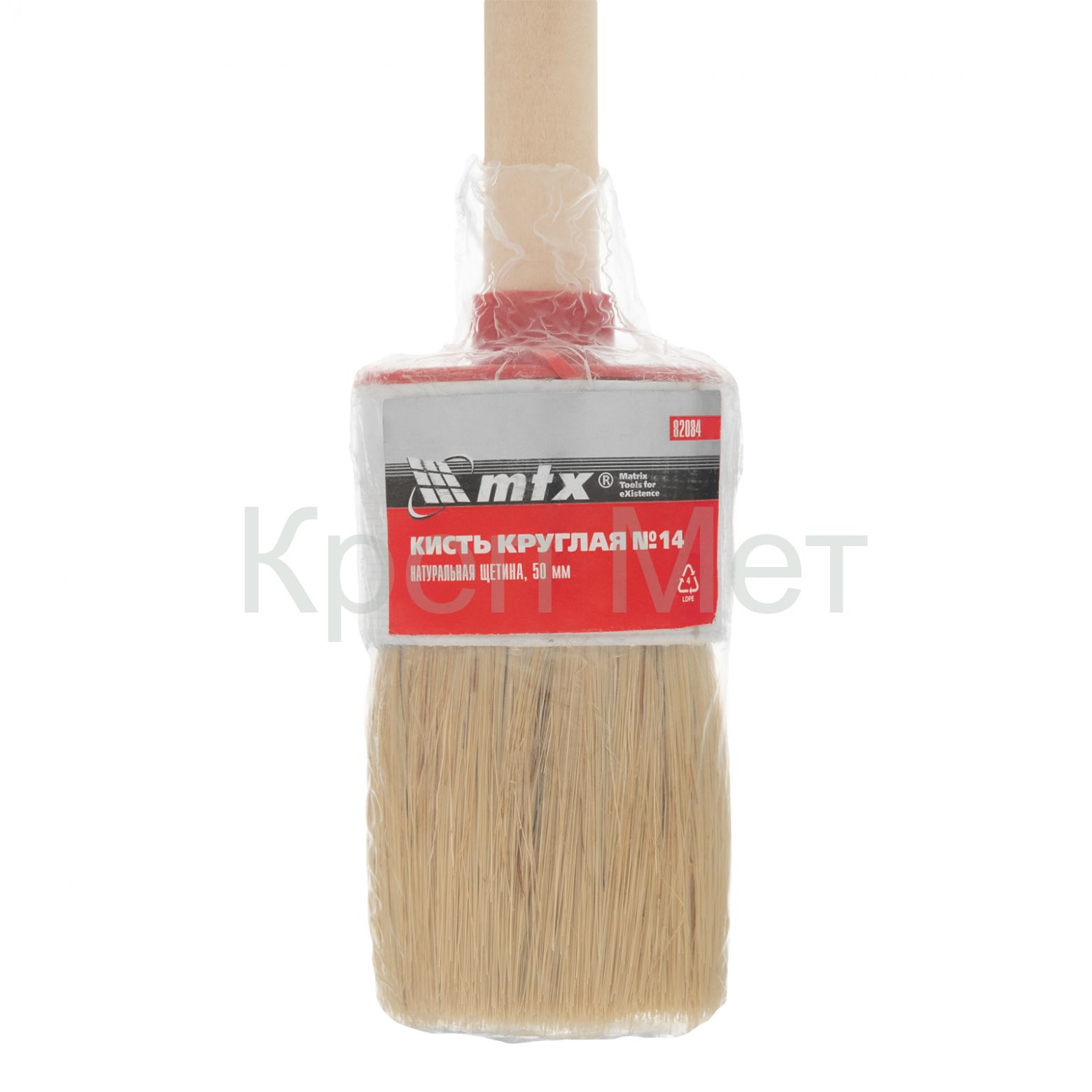 Круглая кисть MTX №14 82084 диаметром 50 мм, с натуральной щетиной и деревянной ручкой, пригодится в быту для окрашивания узких длинных поверхностей. Светлая натуральная свиная щетина с добавлением искусственной обладает высокой износоустойчивостью и может использоваться для нанесения красок с содержанием растворителей, а также масляных красок и лаков.