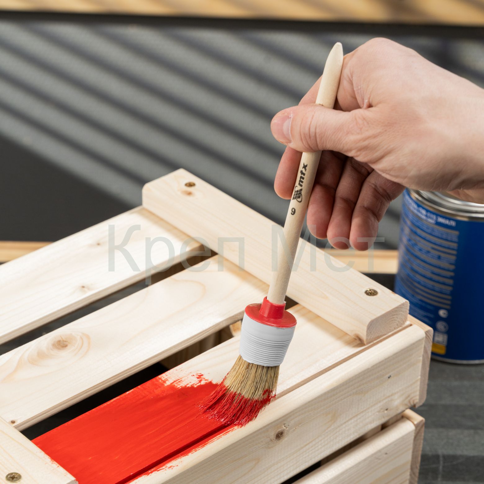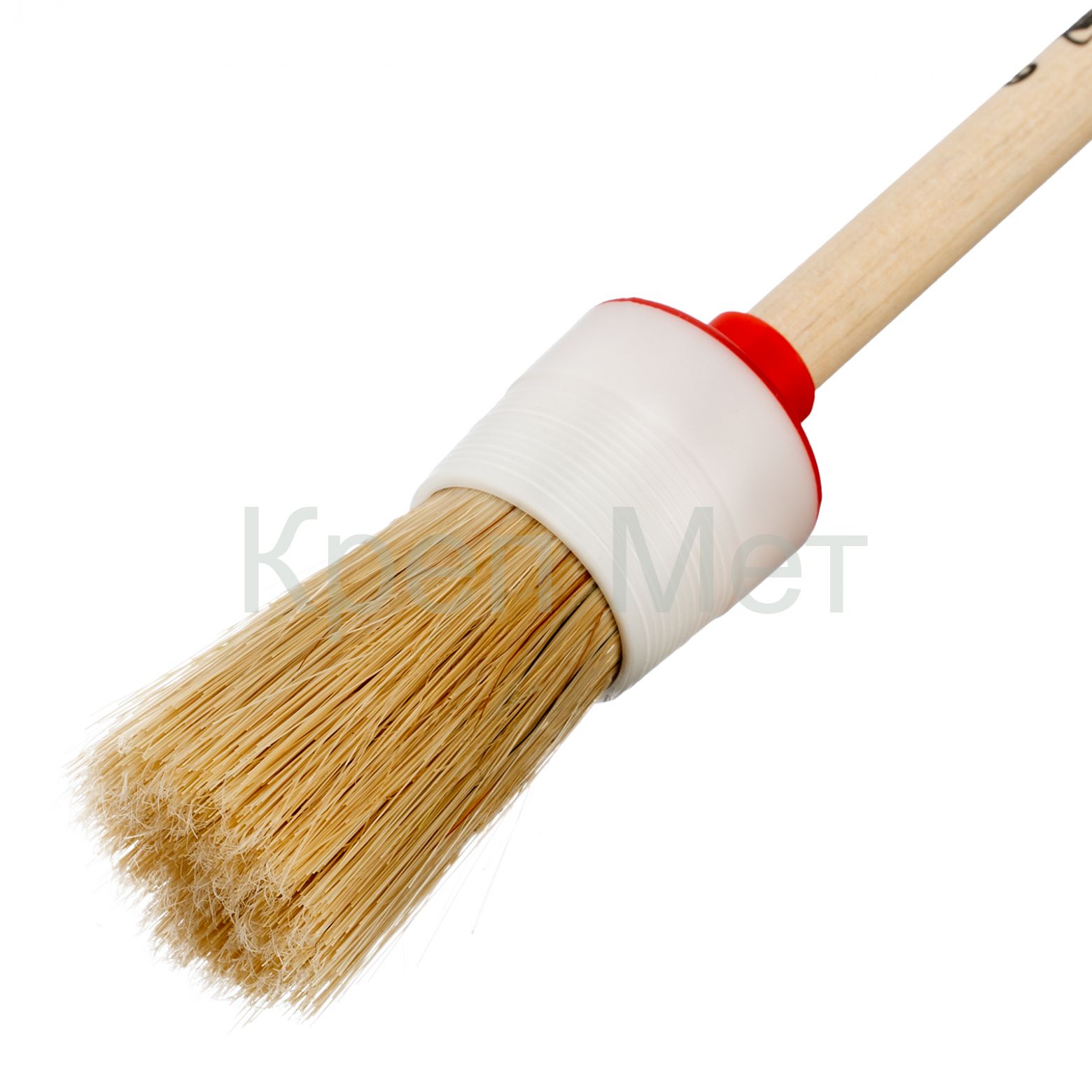Круглая кисть MTX №6 82076 диаметром 30 мм, с натуральной щетиной и деревянной ручкой, пригодится в быту для окрашивания узких длинных поверхностей. Светлая натуральная свиная щетина с добавлением искусственной обладает высокой износоустойчивостью и может использоваться для нанесения красок с содержанием растворителей, а также масляных красок и лаков.