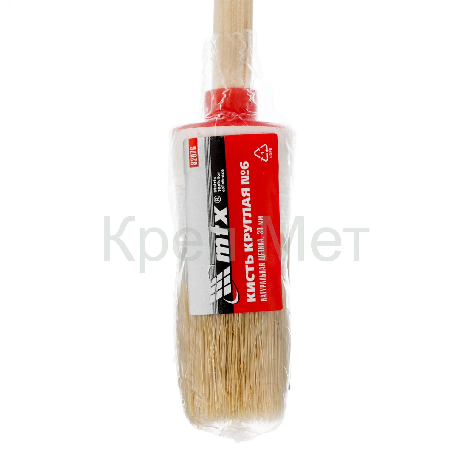 Кисть круглая № 6 (30 мм) натуральная щетина, деревянная ручка MTX