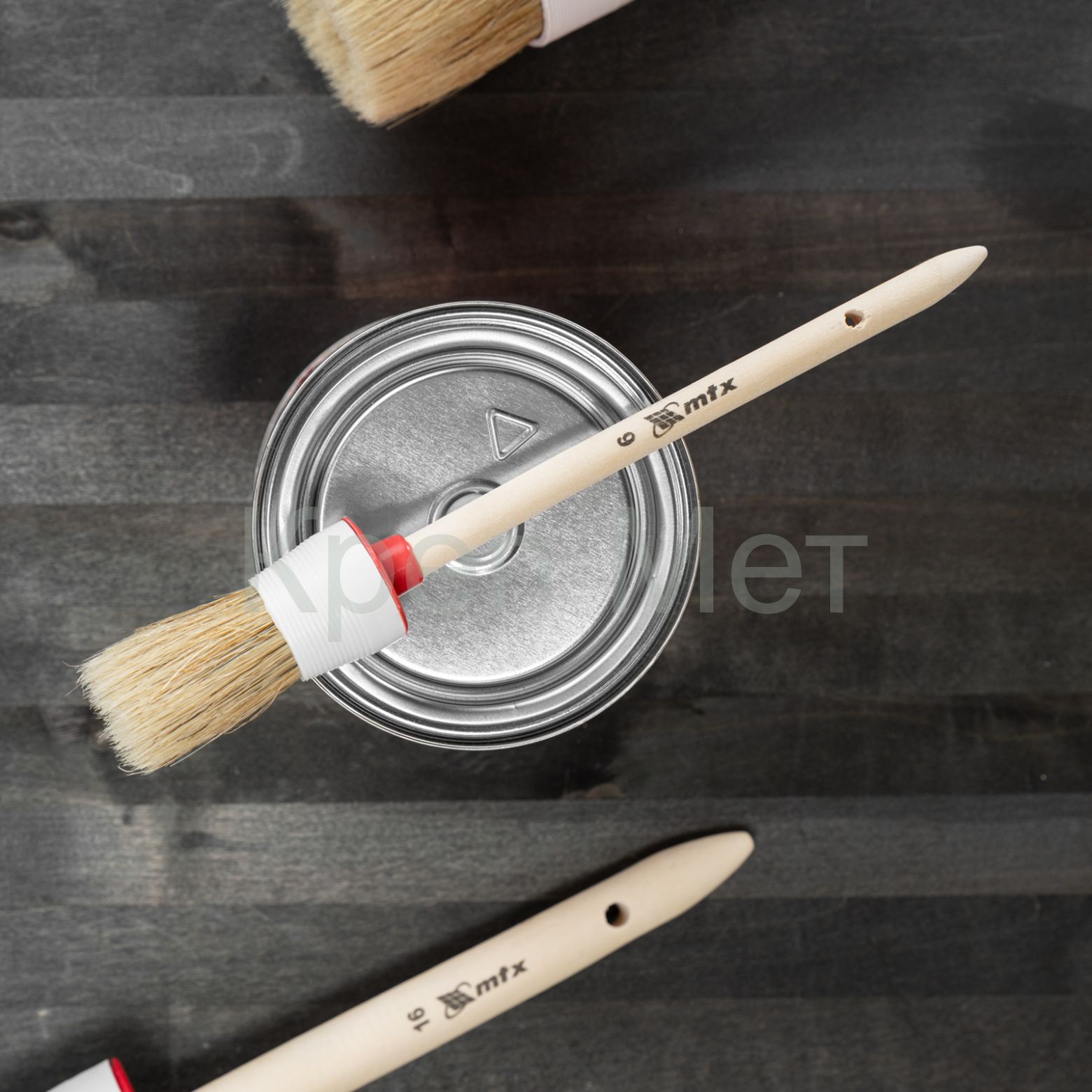 - Кисть круглая № 6 (30 мм) натуральная щетина, деревянная ручка MTX
