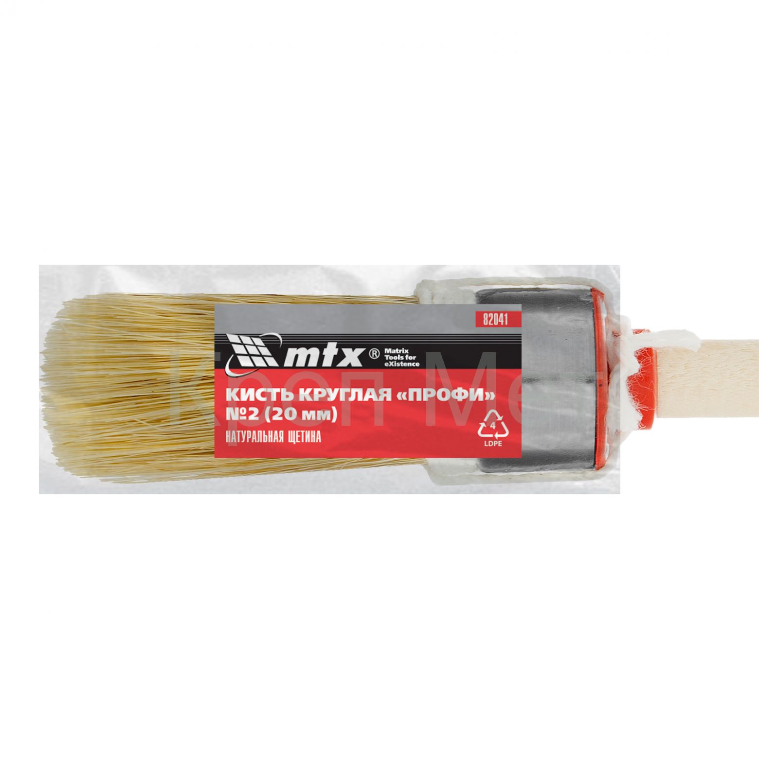 Круглая кисть MTX Профи №2 82041 диаметром 20 мм, с натуральной щетиной и деревянной ручкой, используется при проведении профессиональных малярных работ. Рабочая часть из натуральной свиной щетины с небольшим добавлением искусственной устойчива к агрессивным масляным краскам и ЛКМ на основе растворителей. Круглая кисть оптимально подходит для окрашивания узких и труднодоступных участков.