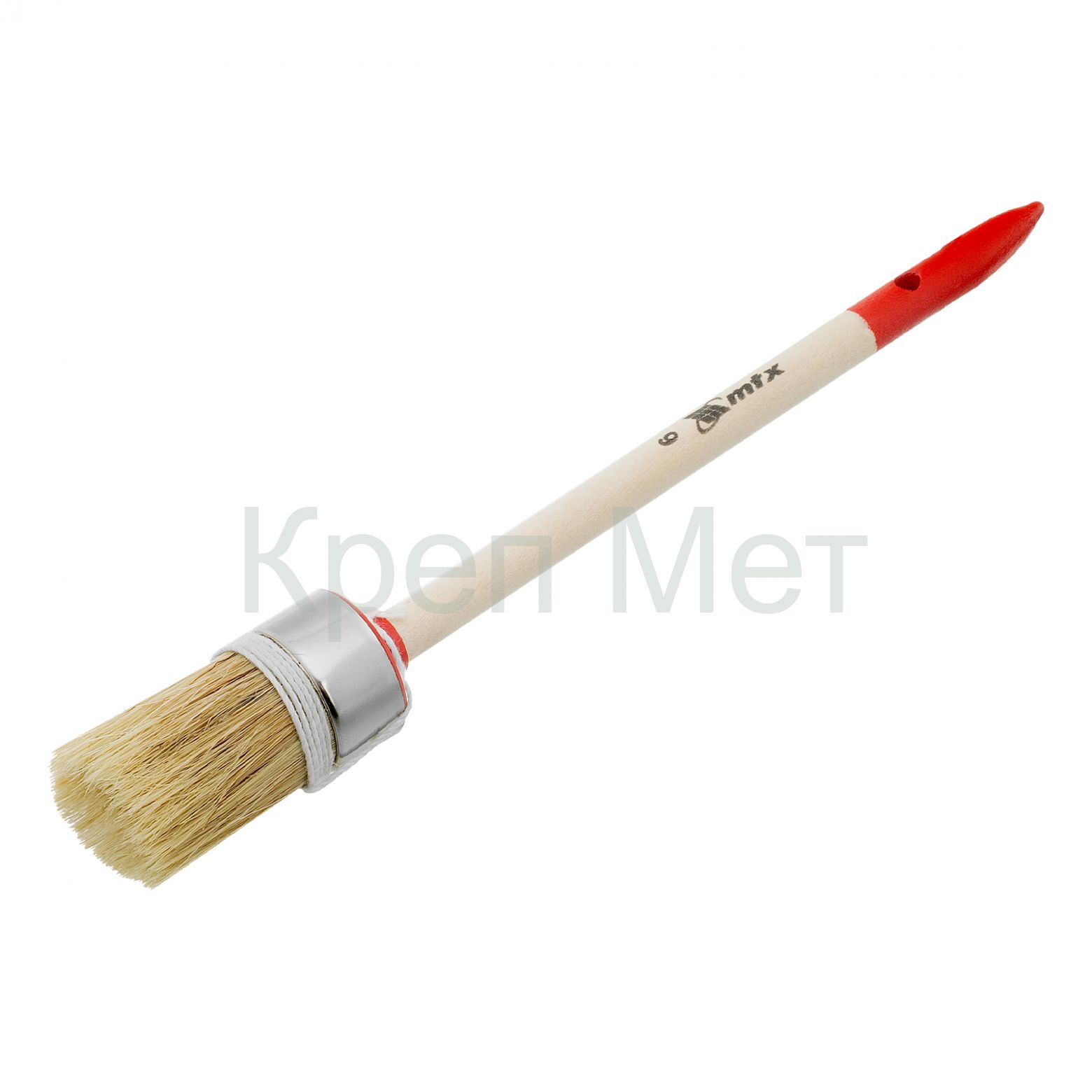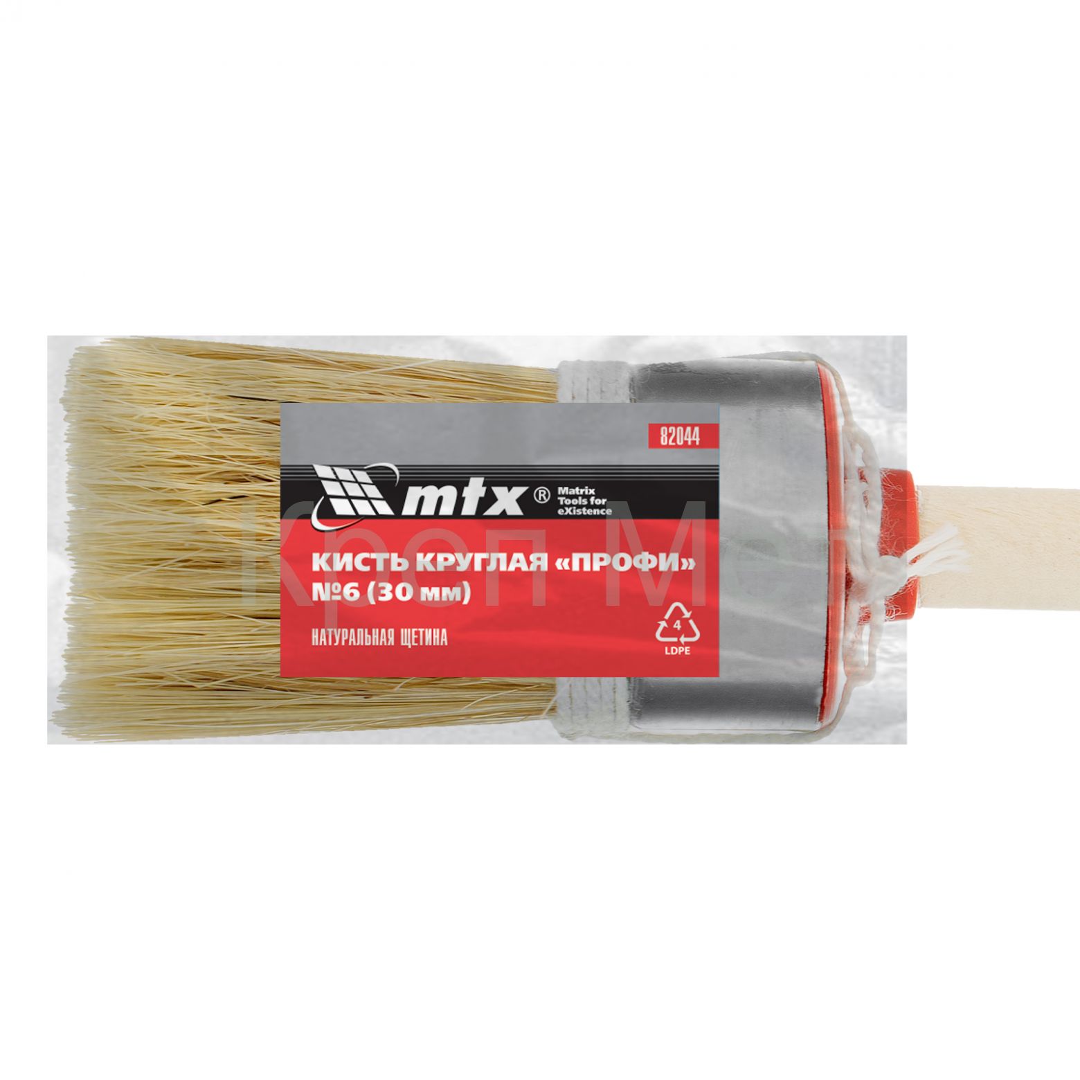 - Кисть круглая, Профи №6 (30 мм) натуральная щетина, деревянная ручка MTX