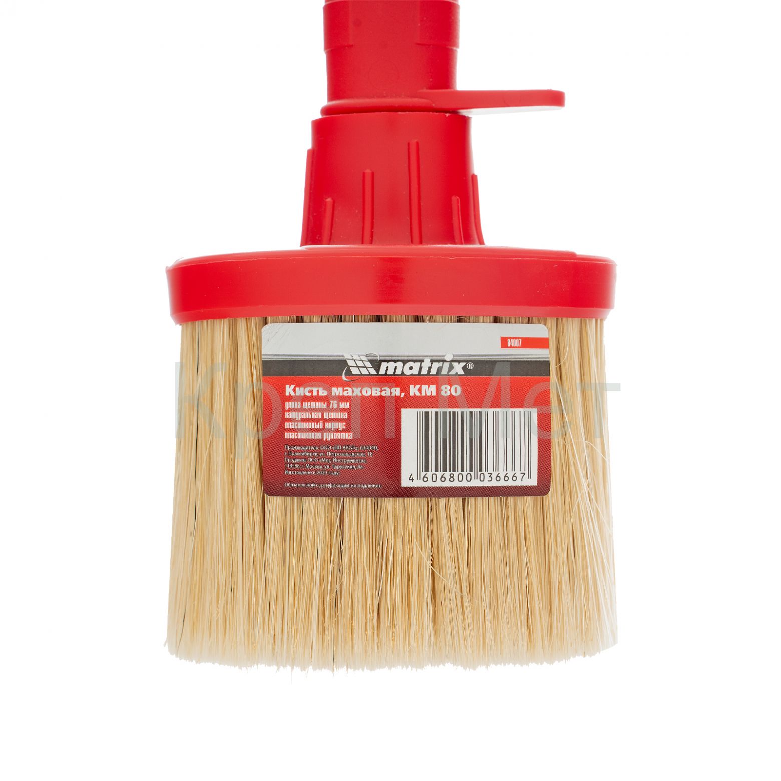 - Кисть маховая, КМ 80, натуральная щетина, пластиковый корпус, пластиковая ручка Matrix