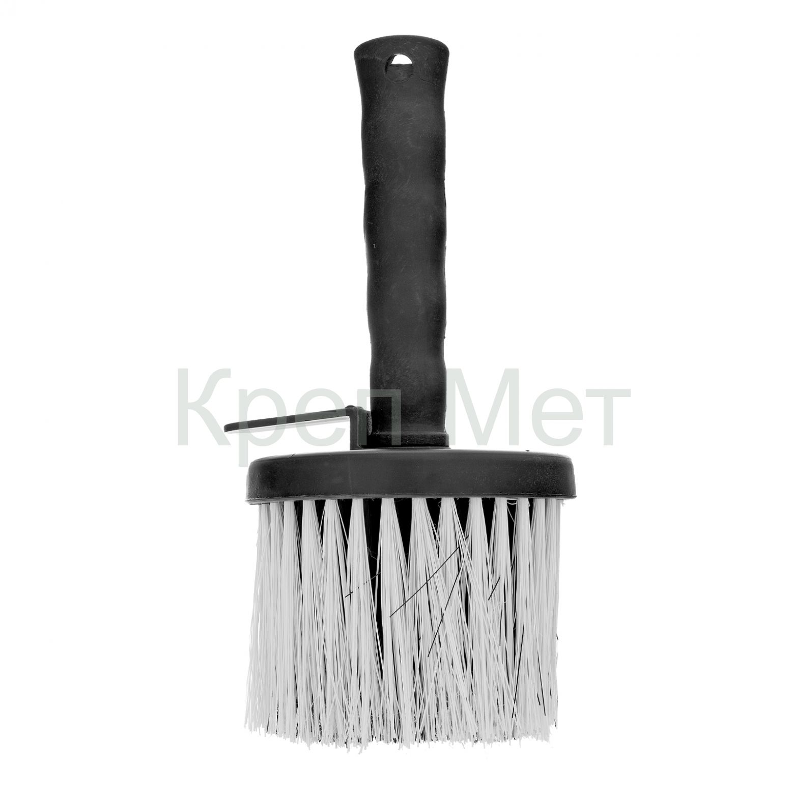 Круглая кисть-макловица MTX 84110 с искусственной щетиной, пластмассовыми корпусом и ручкой, предназначена для нанесения лакокрасочных материалов и клеевых составов на участки большой площади — стены, потолки, фасады. Искусственный ворс не впитывает воду и устойчив к растворителям, поэтому кисть подходит для работ с грунтовками, лаками, водно-дисперсионными и масляными красками.