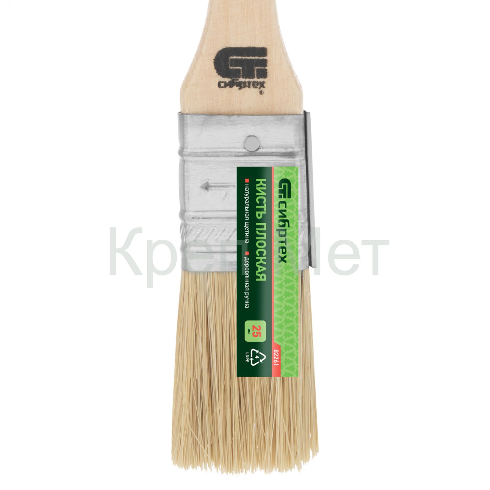 - Кисть плоская 25 мм, натуральная щетина, деревянная ручка Сибртех