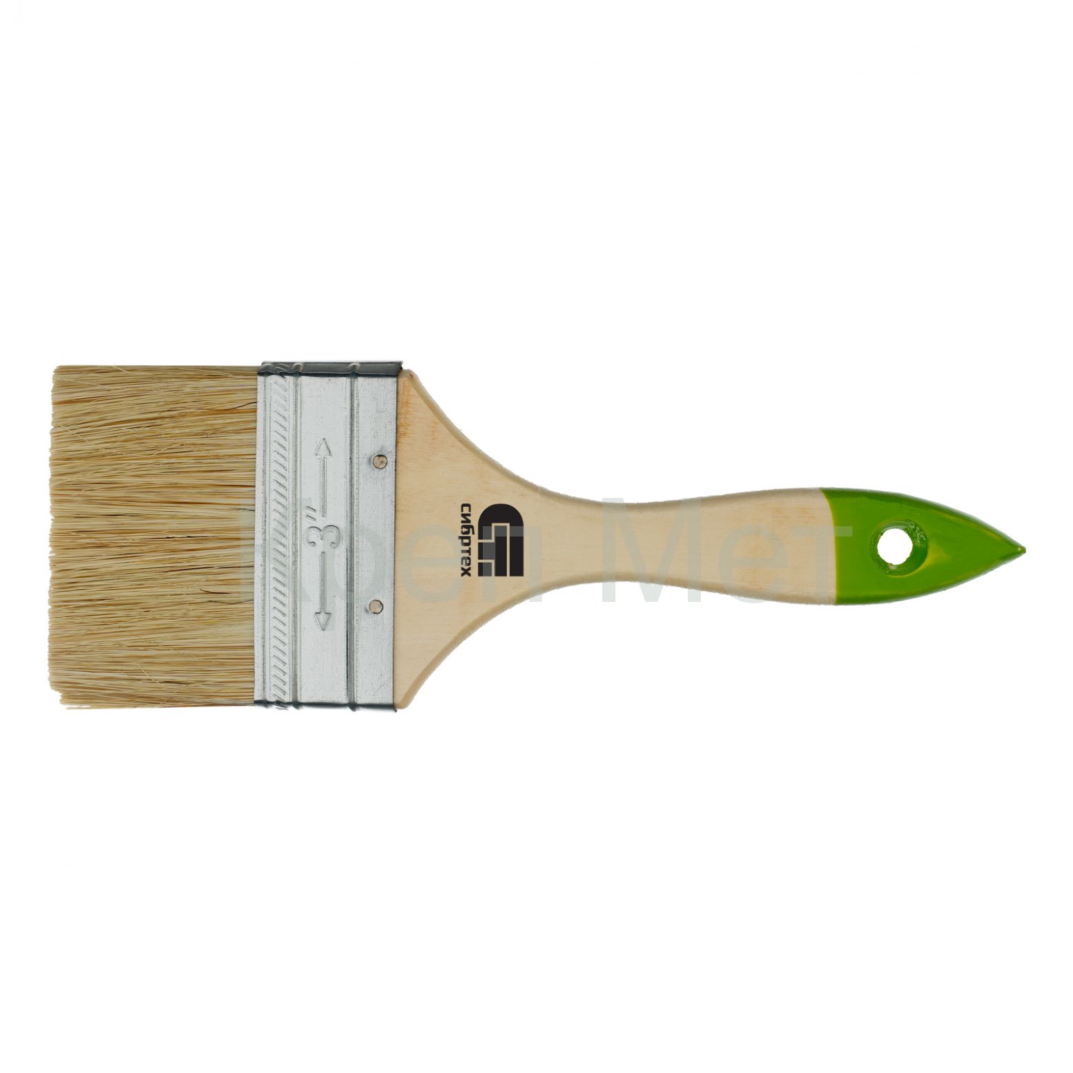 Кисть плоская 75 мм, натуральная щетина, деревянная ручка Сибртех