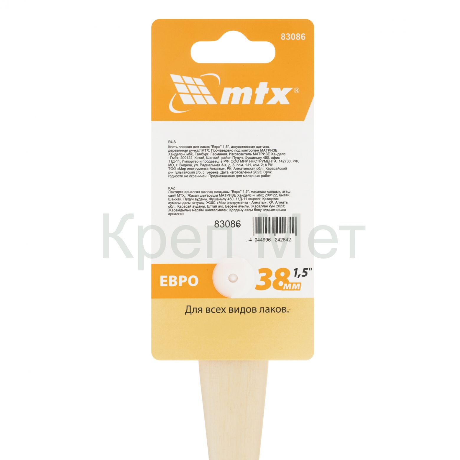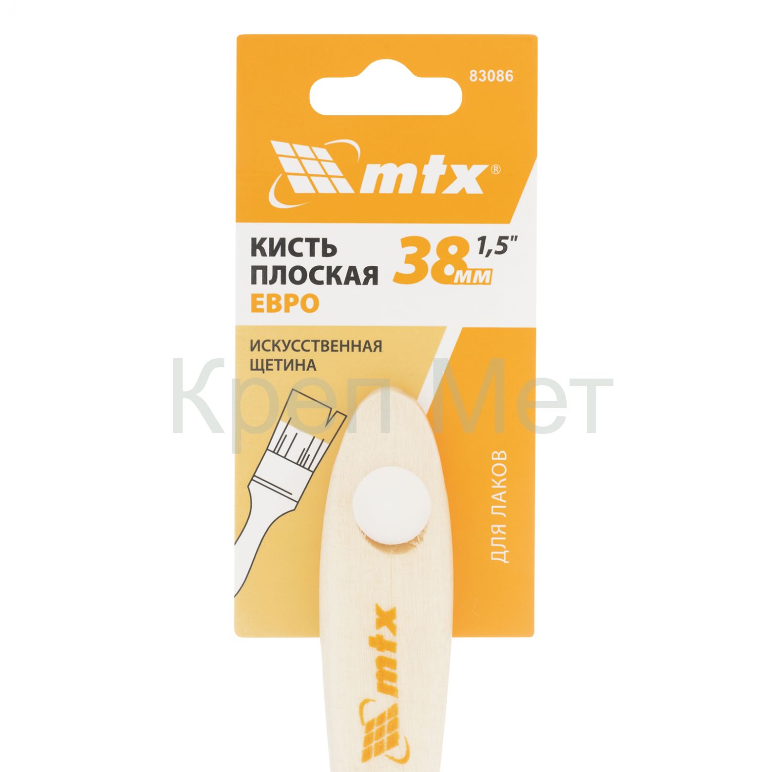 Кисть плоская MTX «Евро» 83086 шириной 1,5", с искусственной щетиной и деревянной ручкой, пригодится при проведении малярных работ. Предназначена для работы с любыми типами лаков. Мягкая и упругая щетина оптимальна для нанесения покрытий на гладкие и слегка шероховатые поверхности.