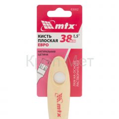 Кисть плоская "Евро" 1.5", натуральная щетина, деревянная ручка MTX