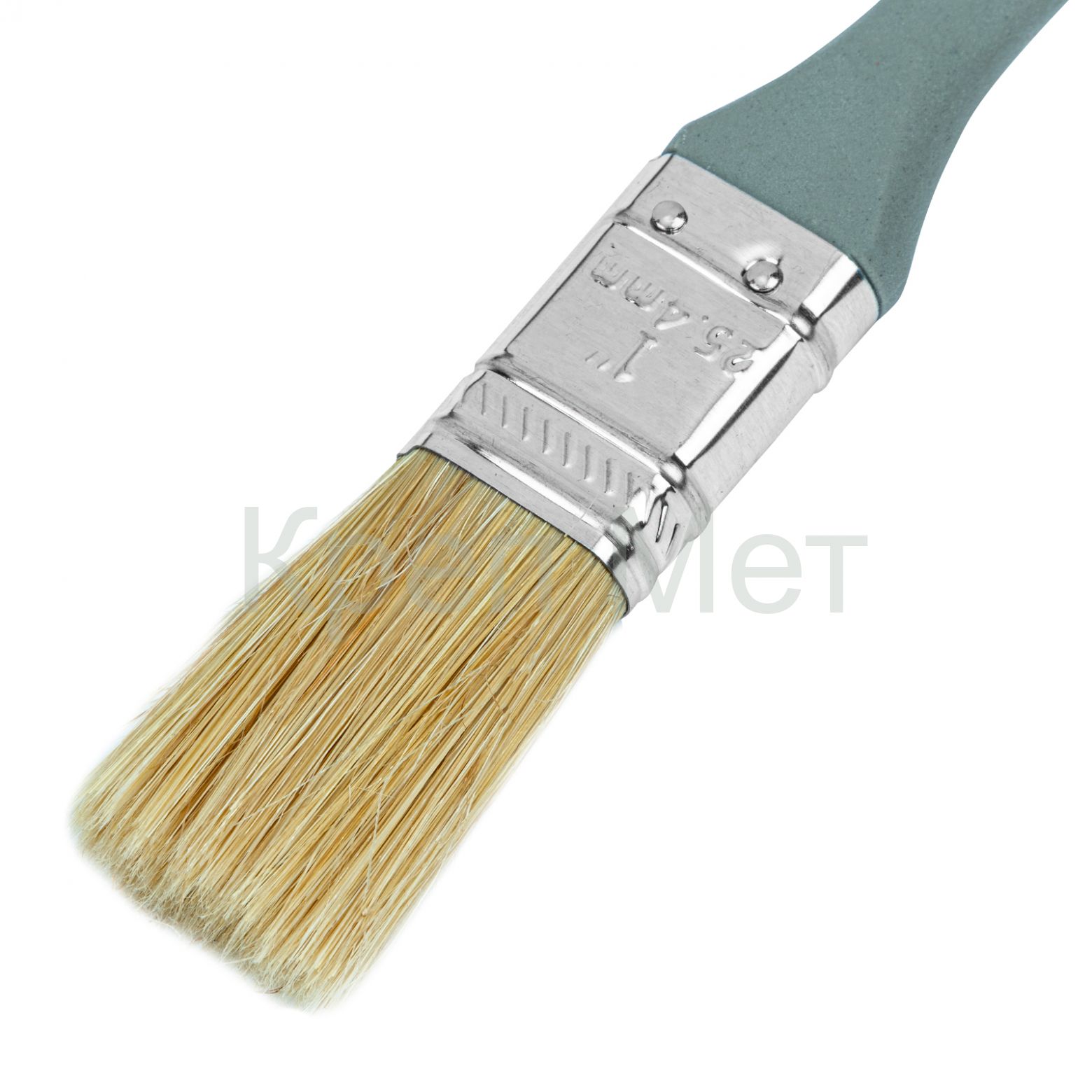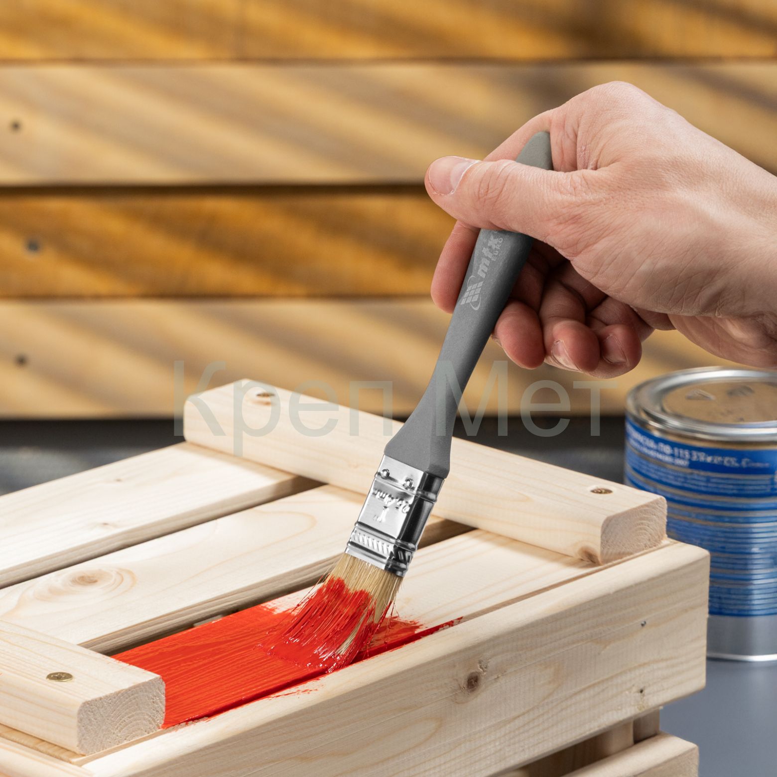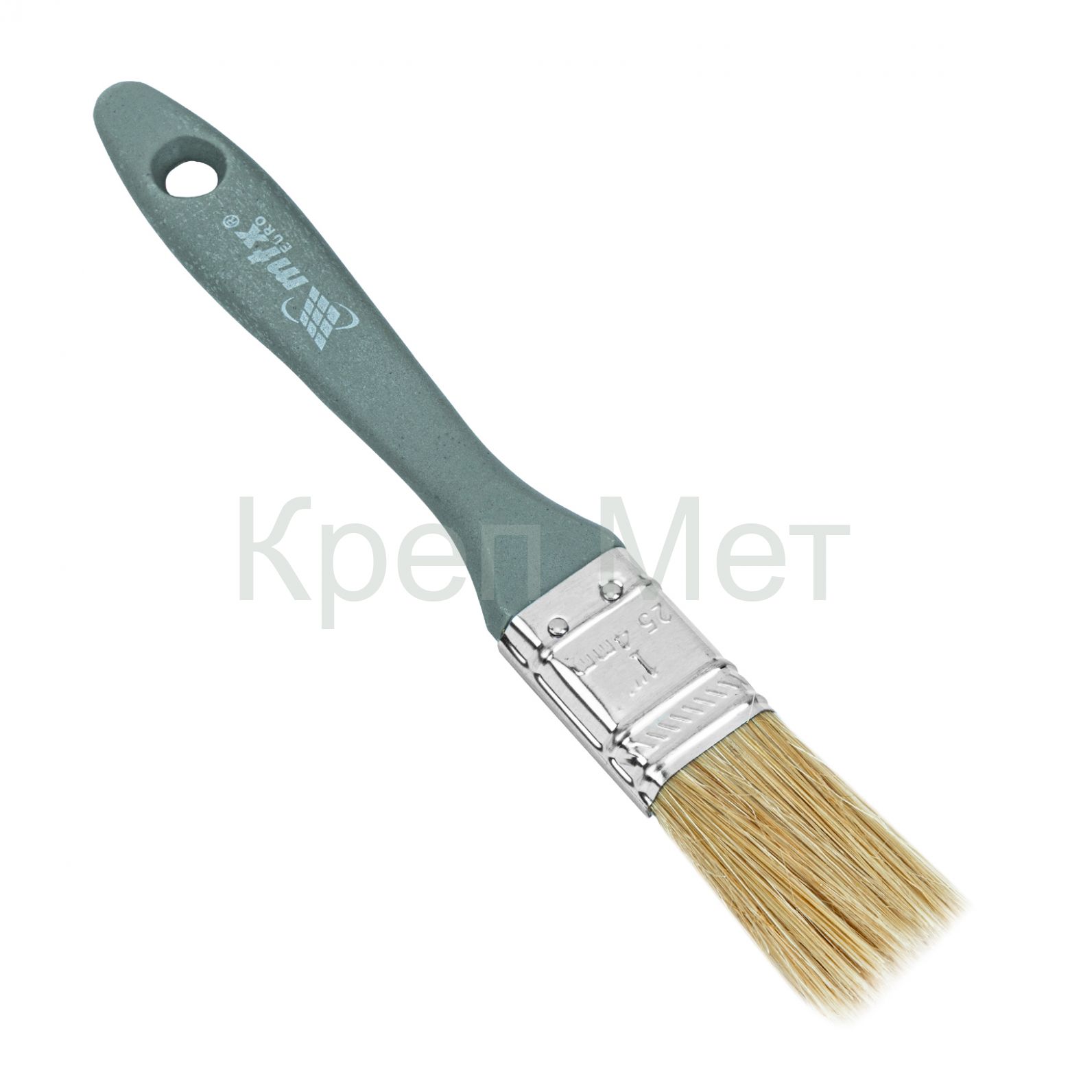 Плоская кисть MTX «Евро» 83061 шириной 1 дюйм, с натуральной щетиной и пластмассовой ручкой, используется для профессионального окрашивания поверхностей. Рекомендуется для нанесения агрессивных ЛКМ с содержанием растворителей.