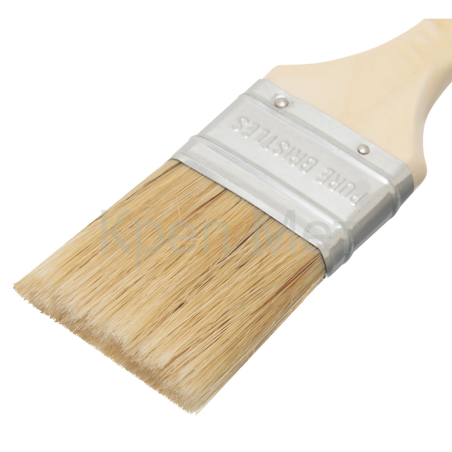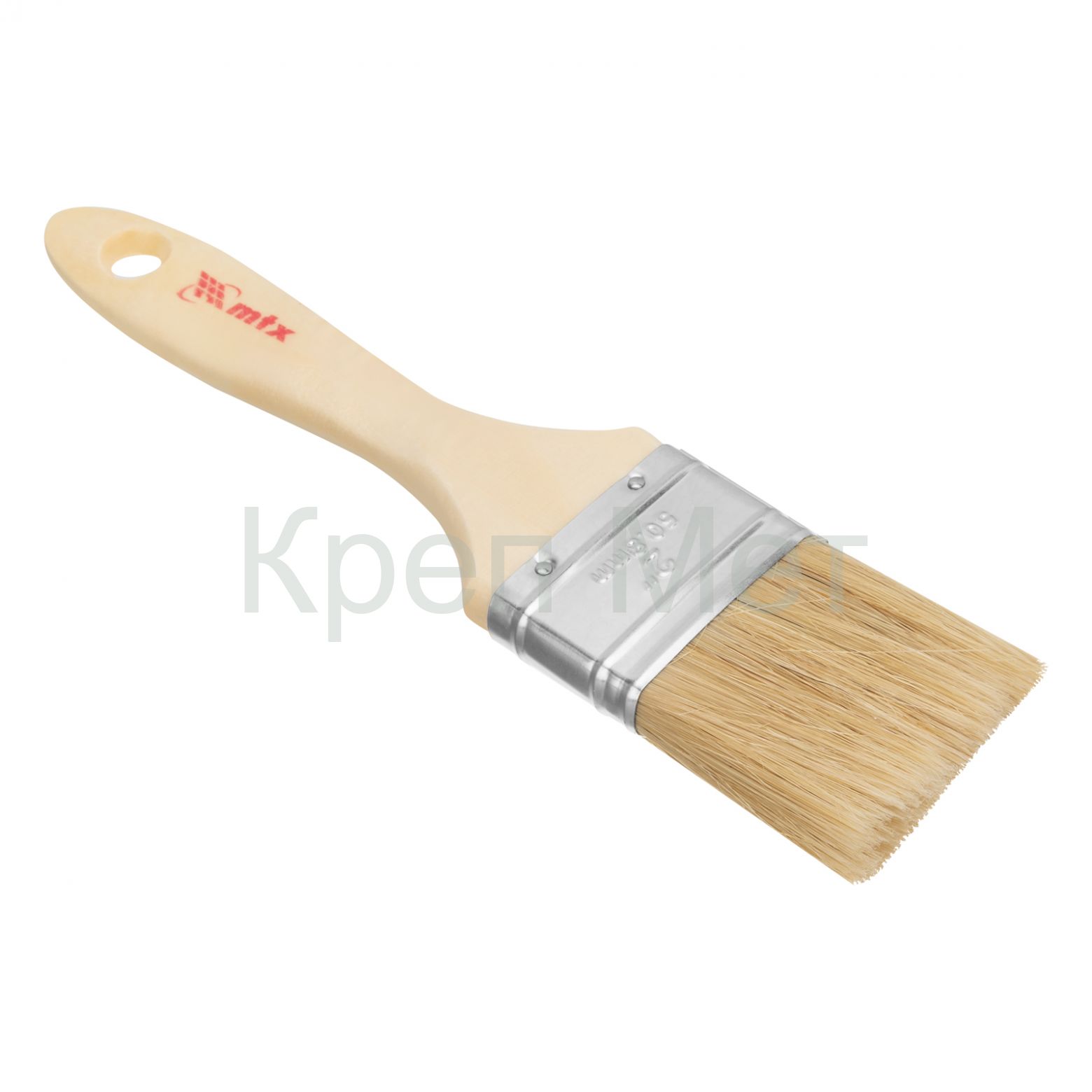 Плоская кисть MTX «Евро» 83053 шириной 2 дюйма, с натуральной щетиной и деревянной ручкой, используется для профессионального окрашивания поверхностей. Рекомендуется для нанесения агрессивных ЛКМ с содержанием растворителей.