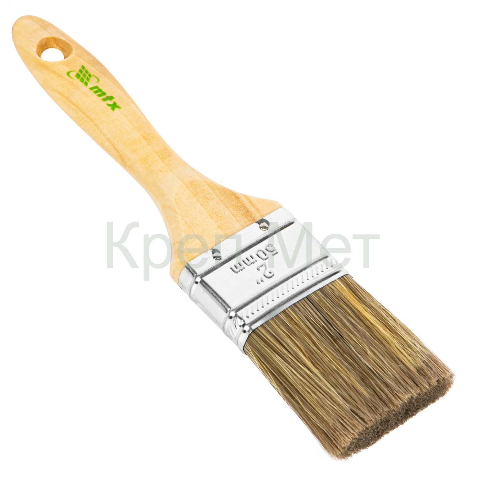 - Кисть плоская "Евро" 2", смешанная щетина, деревянная ручка MTX
