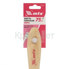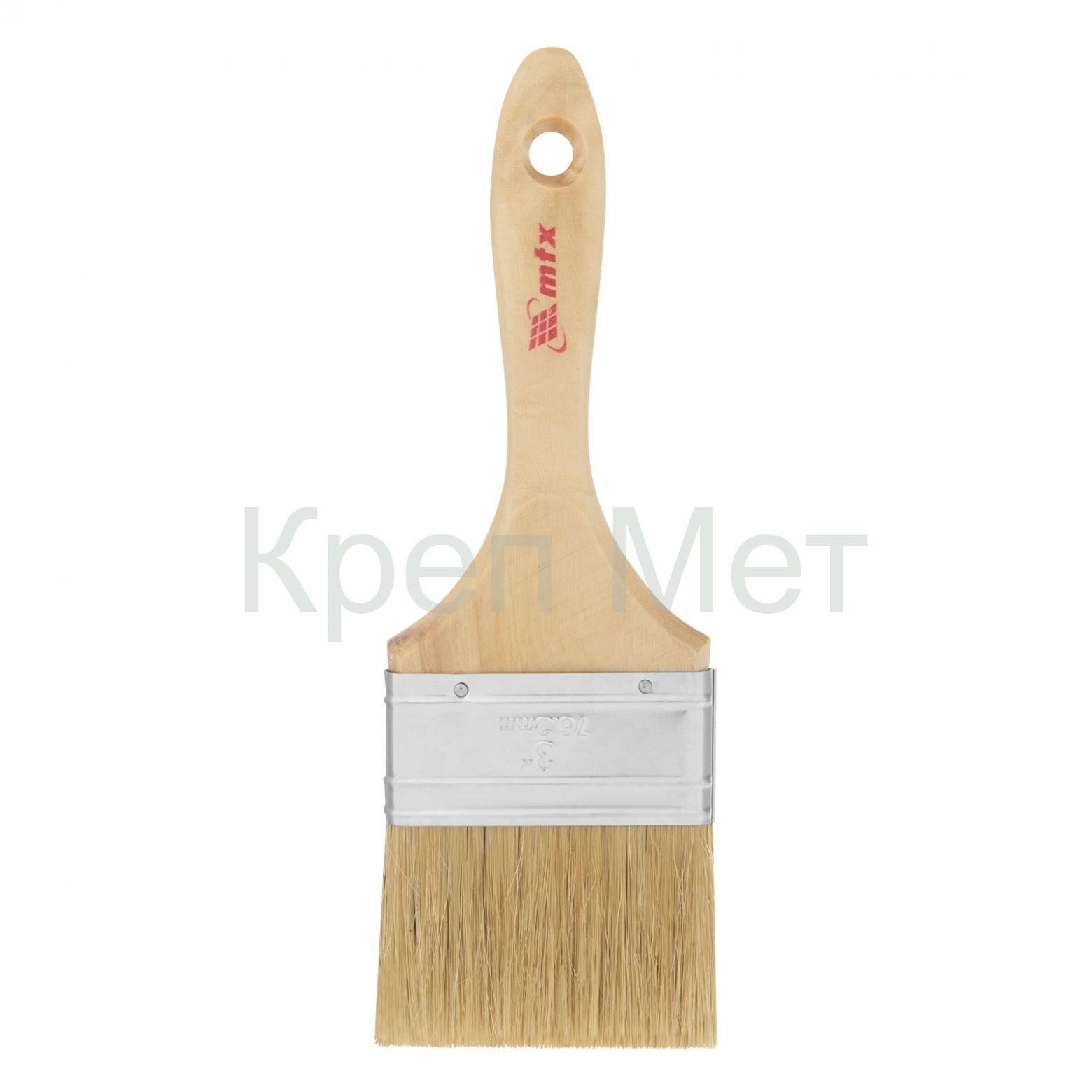 - Кисть плоская "Евро" 3", натуральная щетина, деревянная ручка MTX