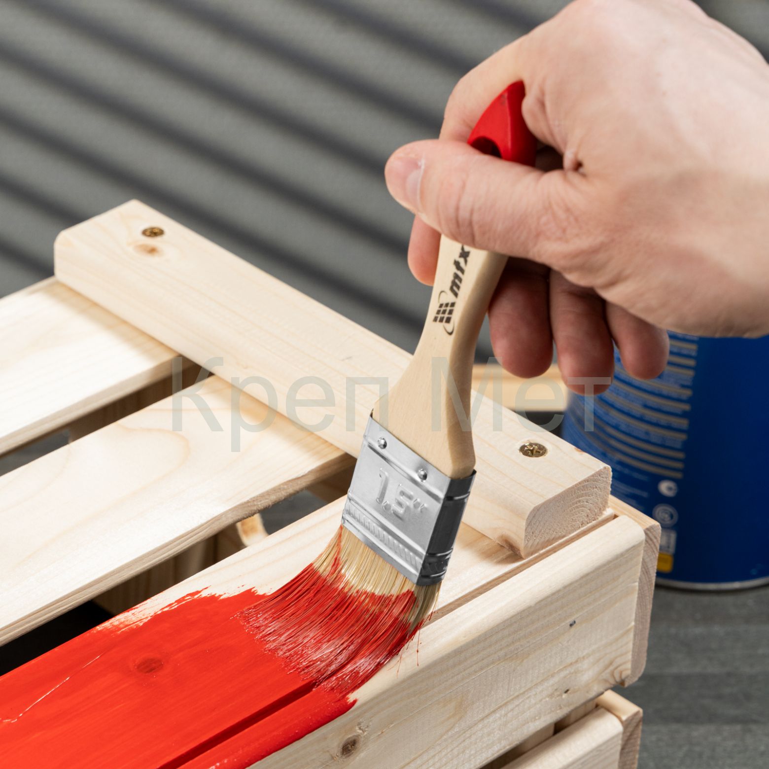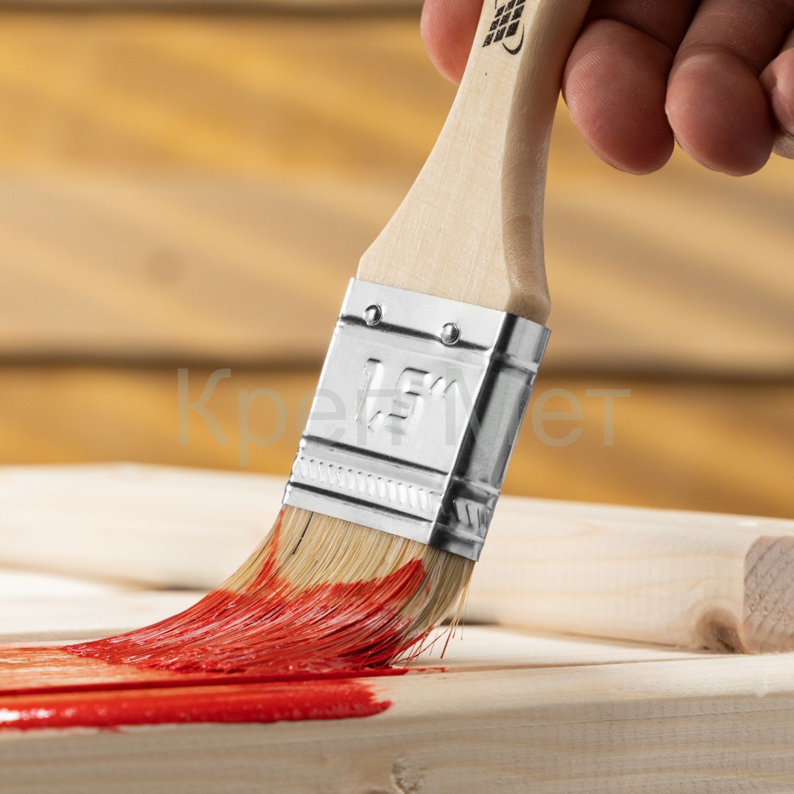 Плоская кисть MTX «Стандарт» 82525 шириной 1,5 дюйма (38 мм), с натуральной щетиной и деревянной ручкой, — инструмент для проведения бытовых малярных работ. Натуральная светлая щетина обладает высокой износоустойчивостью и подходит для нанесения красок на основе растворителей. За счет ширины 38 мм кисть подходит для окрашивания узких поверхностей, например, плинтусов и рам.