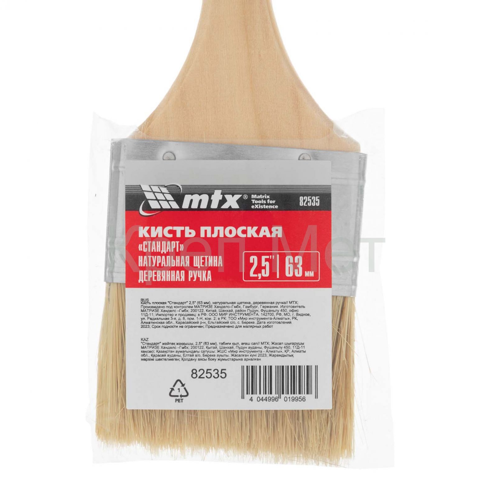 - Кисть плоская "Стандарт" 2.5" (63 мм) натуральная щетина, деревянная ручка MTX