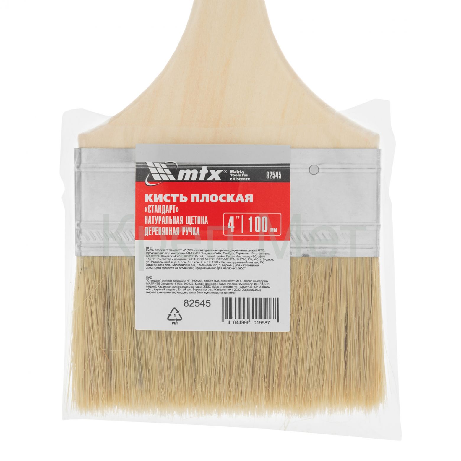 - Кисть плоская "Стандарт" 4" (100 мм) натуральная щетина, деревянная ручка MTX