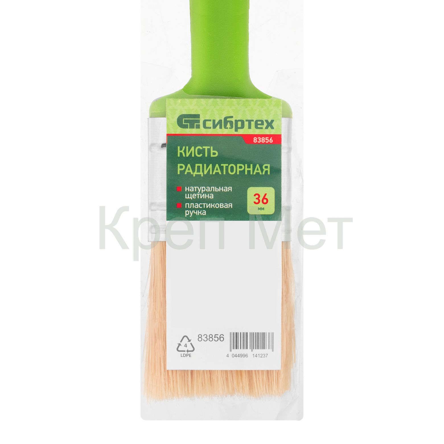 - Кисть радиаторная 36 мм, натуральная щетина, пластиковая ручка Сибртех